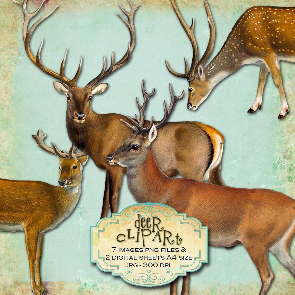 Deer Clipart - Digital images for your crafting project - Download to print for scrapbooks, invitations, journaling, hang tags, card making, collages... a great supply for your artwork.
