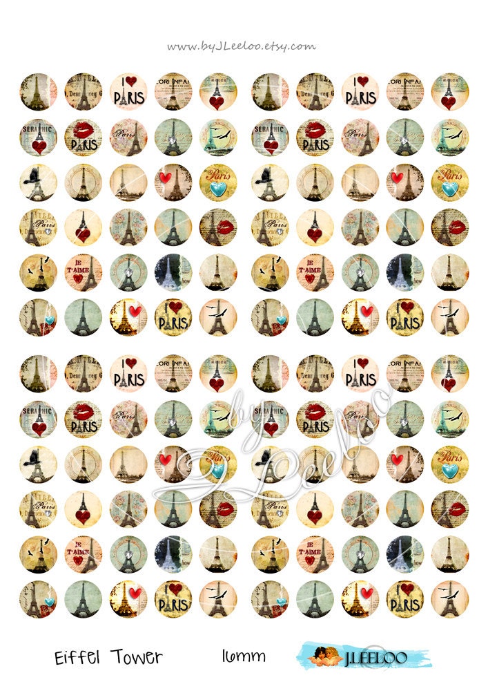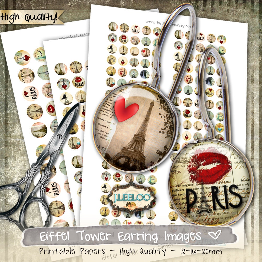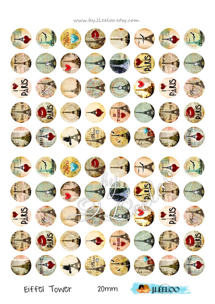 EIFFEL TOWER - Digital collage sheets - Circles images instant download ready to print for your jewelry making, resin pendants, rings, earrings and button, for magnets, stickers, scrapbook and your others craft project.