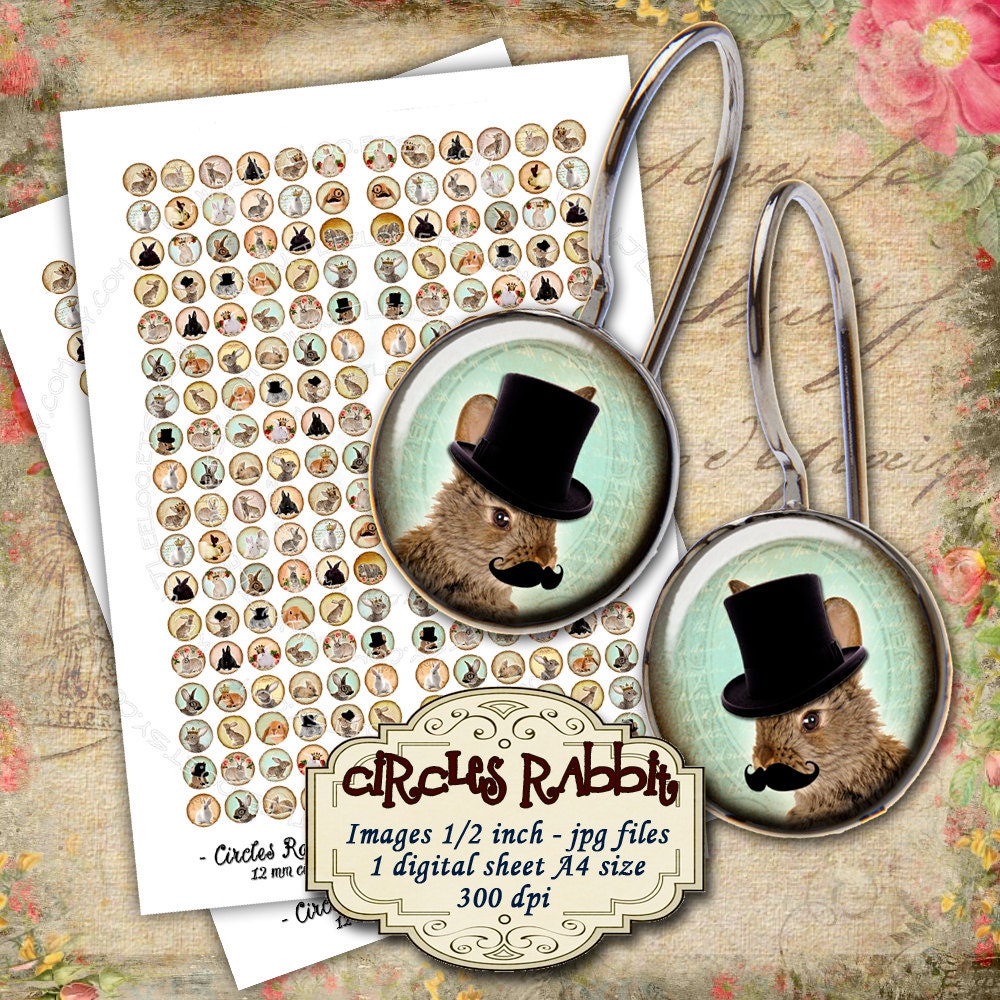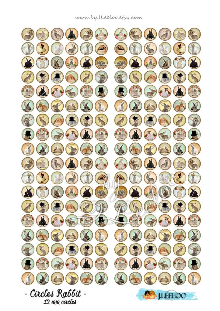 Circles Rabbit - Digital collage sheets - Circles images instant download ready to print for your jewelry making, resin pendants, rings, earrings and button, for magnets, stickers, scrapbook and your others craft project.
