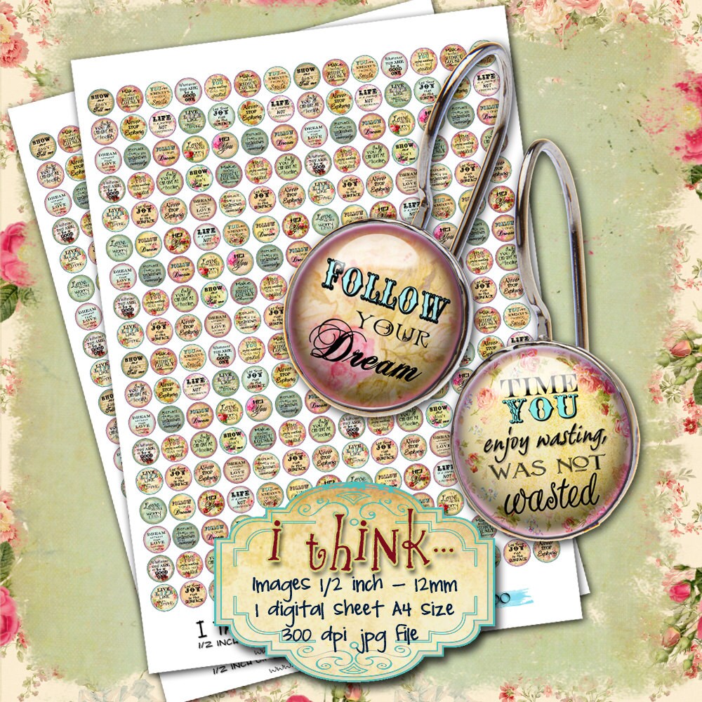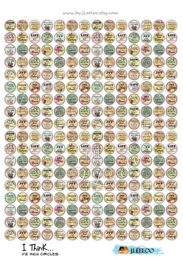 I think quote - Digital collage sheets - Circles images instant download ready to print for your jewelry making, resin pendants, rings, earrings and button, for magnets, stickers, scrapbook and your others craft project.