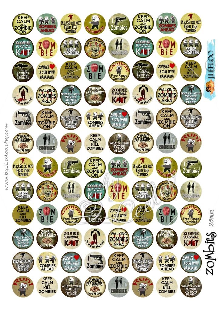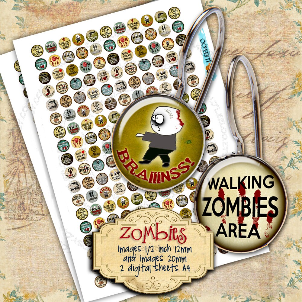 ZOMBIES - Digital collage sheets - Circles images instant download ready to print for your jewelry making, resin pendants, rings, earrings and button, for magnets, stickers, scrapbook and your others craft project.