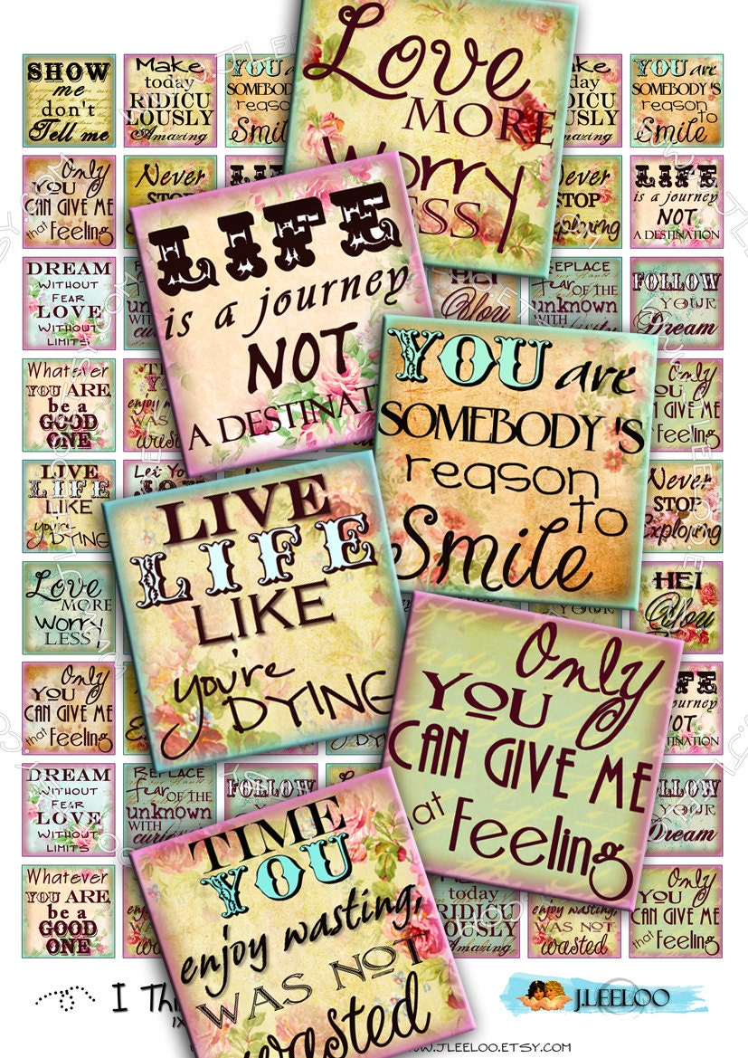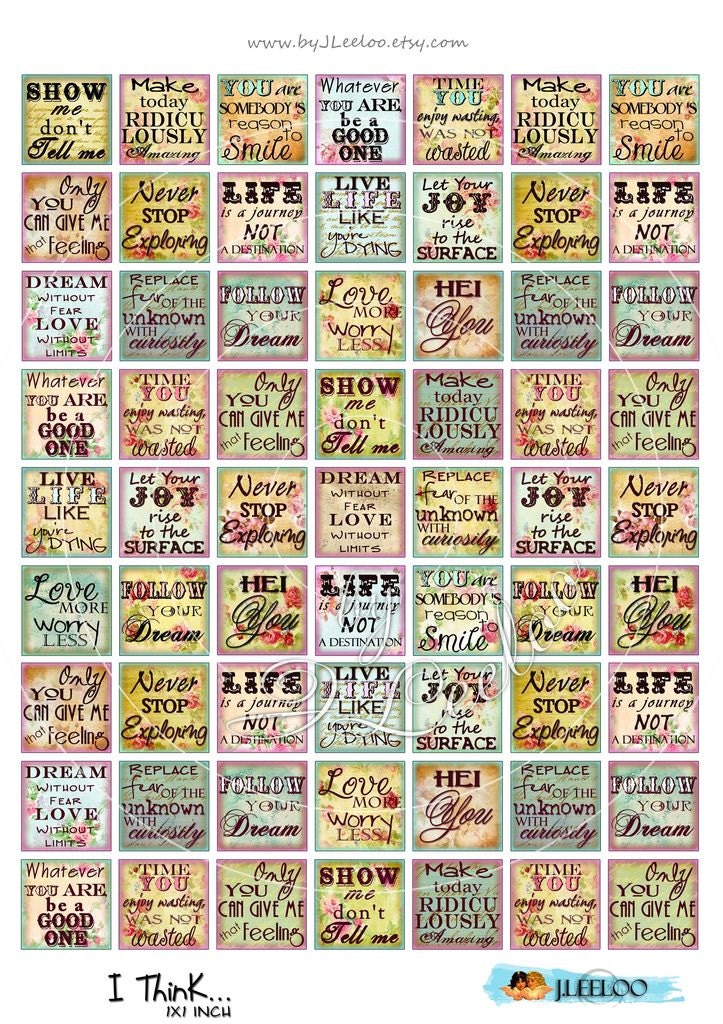 Instant Download - Digital collage sheets - Squares printable images for resin pendants, charms, card making, button, magnets, stickers and all your craft project.