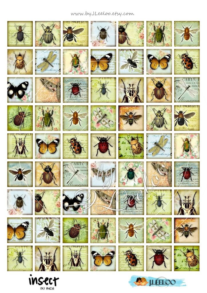 INSECT - Instant Download - Digital paper - Circle printable images for jewelry, glass cabochons, bottle caps, stickers, hang tags and all your artwork.