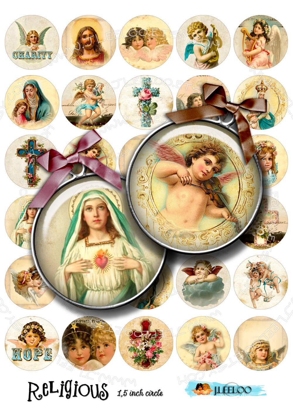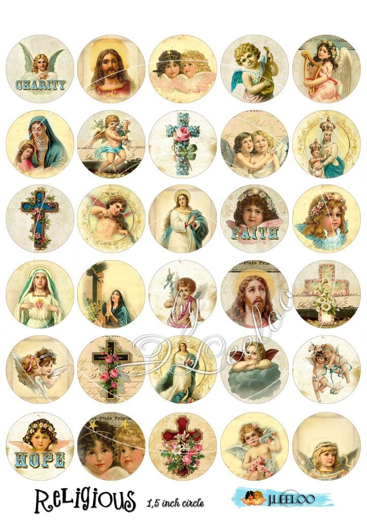 RELIGIOS - Instant Download Digital collage sheets - Circle printable images for jewelry, glass cabochons, bottle caps, stickers, hang tags and all your artwork.