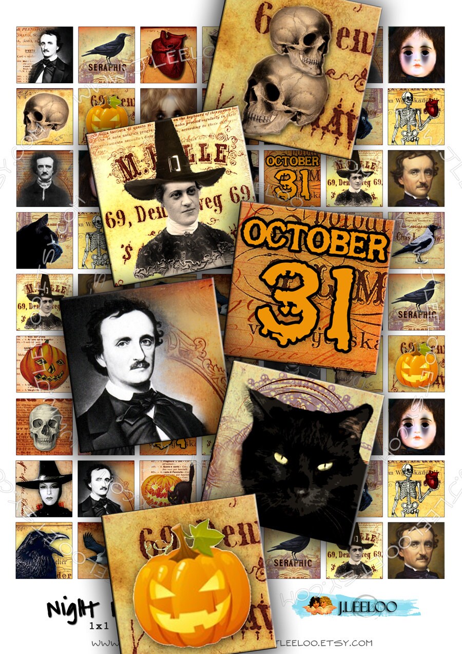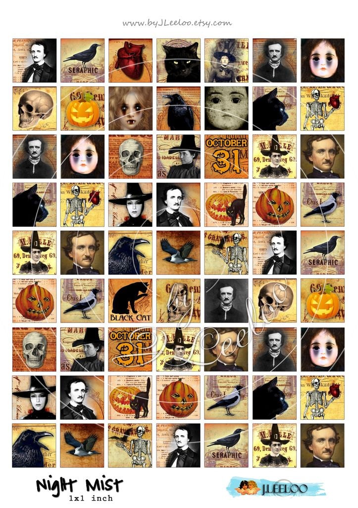 NIGHT MIST Instant Download - Digital collage sheets - Square printable images for jewelry, glass cabochons, bottle caps, stickers, hang tags and all your artwork.