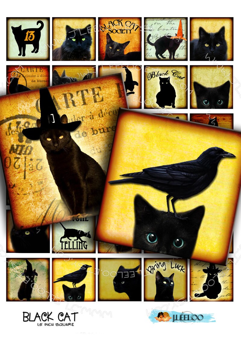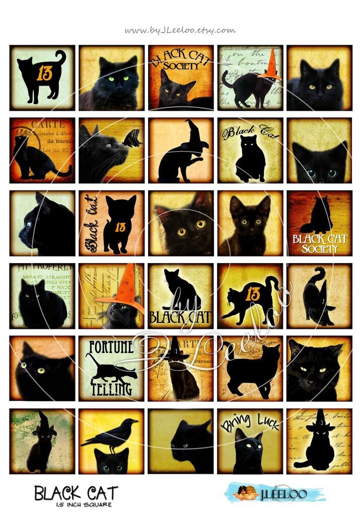 Black Cats - Instant download printable - goth digital collage sheets - images for your crafting project - hang tags, jewelry holders, stickers, scrapbook and all your need for your art.