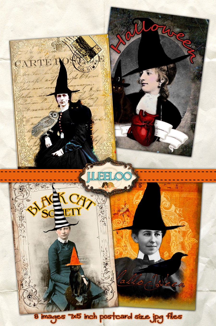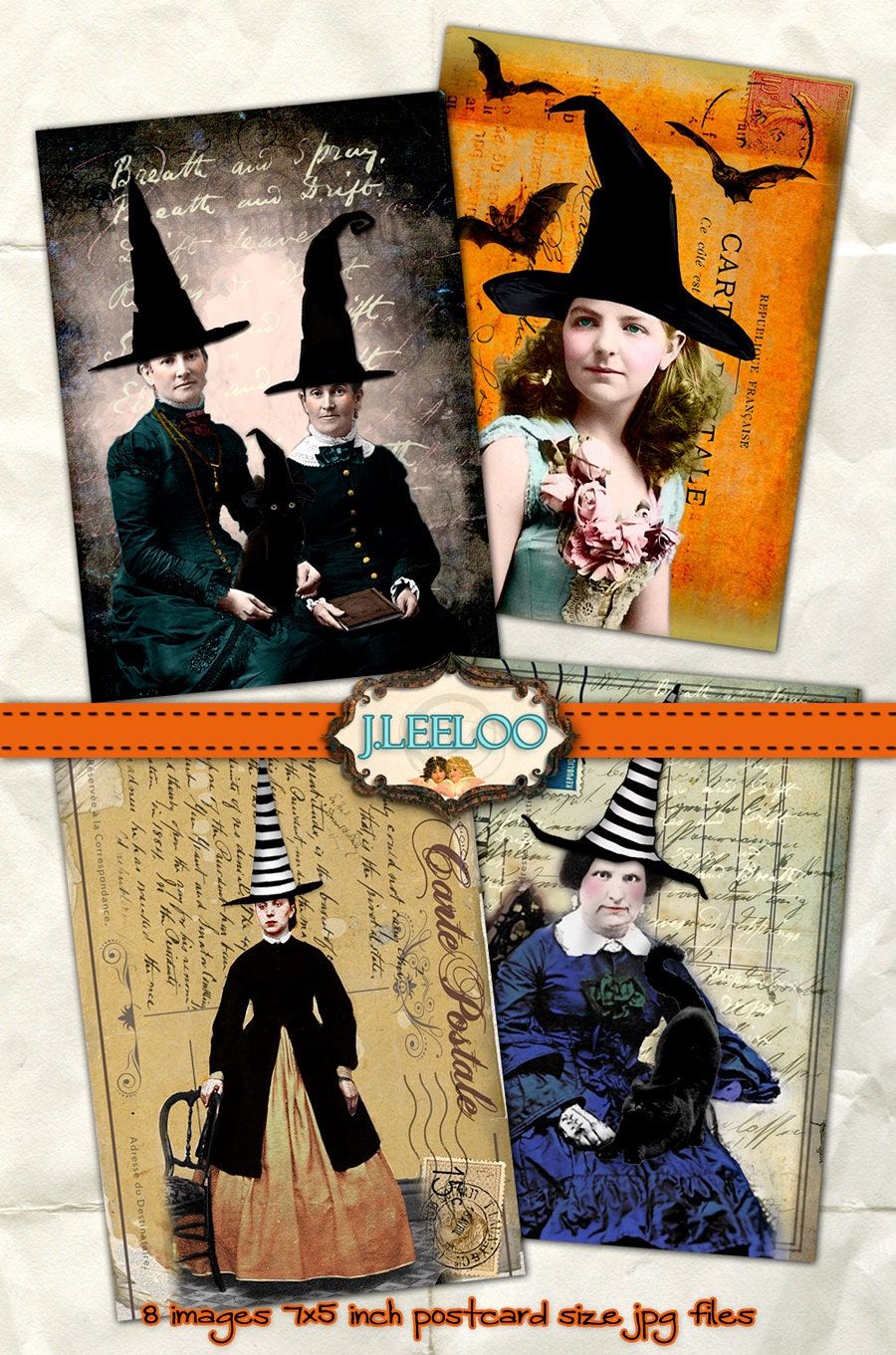 WITCH - Digital collage sheets - Halloween download and print for card making, iron-on transfer, hang tags, labels, scrapbook, jewelry holders and your others craft projects.