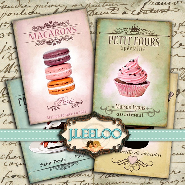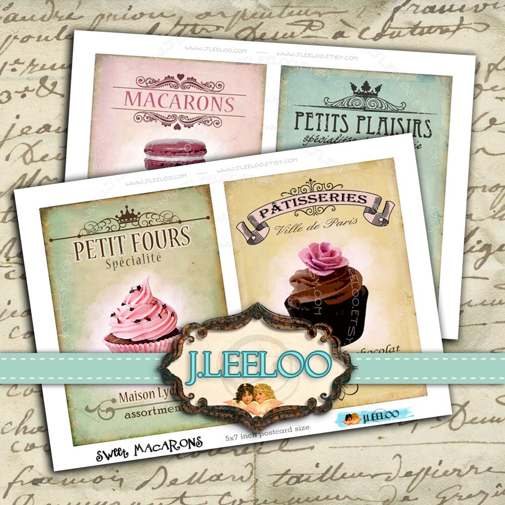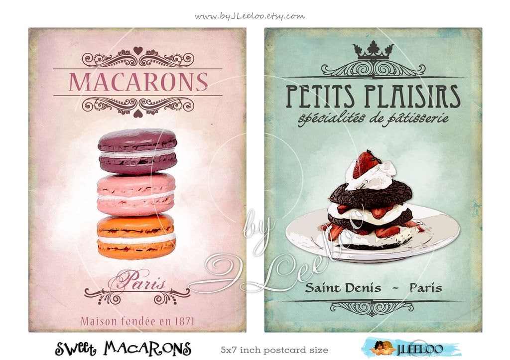 SWEET MACARONS Digital collage sheets: download and print for card making, iron-on transfer, hang tags, labels, scrapbook, jewelry holders and your others craft projects.