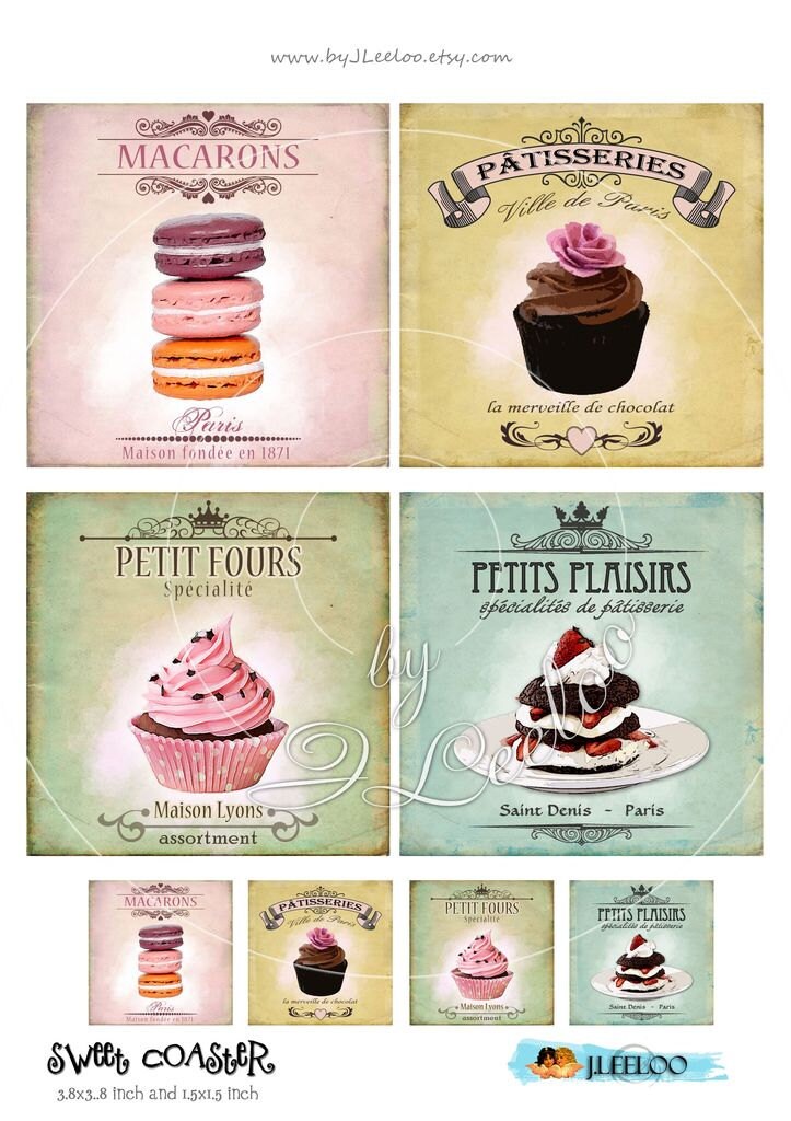 Digital collage sheets: download and print for coaster, card making, iron-on transfer, hang tags, labels, scrapbook, jewelry holders and your others craft projects.