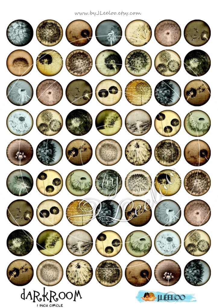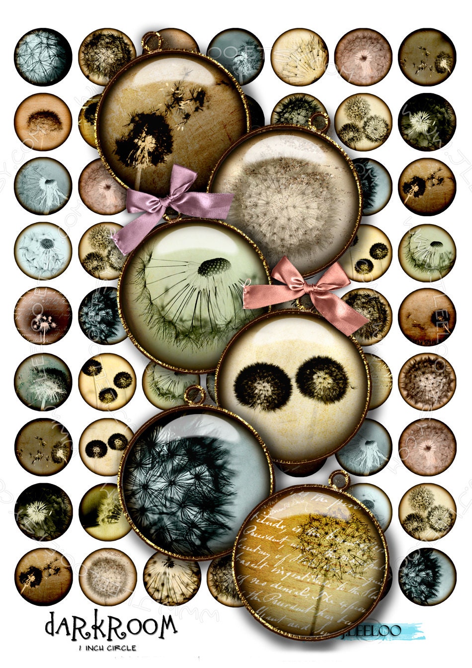 DARKROOM Instant Download - Digital collage sheets - Round dandelion printable images for resin pendants, charms, card making, button, magnets, stickers and all your craft project.