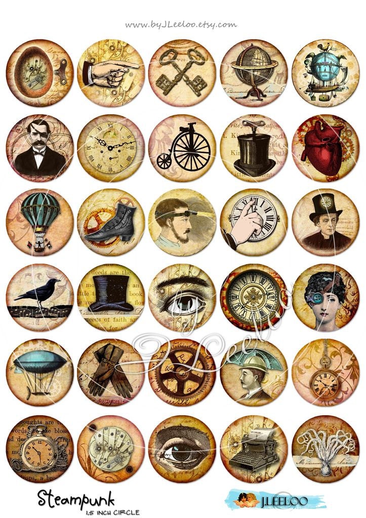 Instant Download - Digital collage sheets - Round printable images for bottlecups, hang tags, resin pendants, pins, charms, card making, button, magnets, stickers and all your craft project.