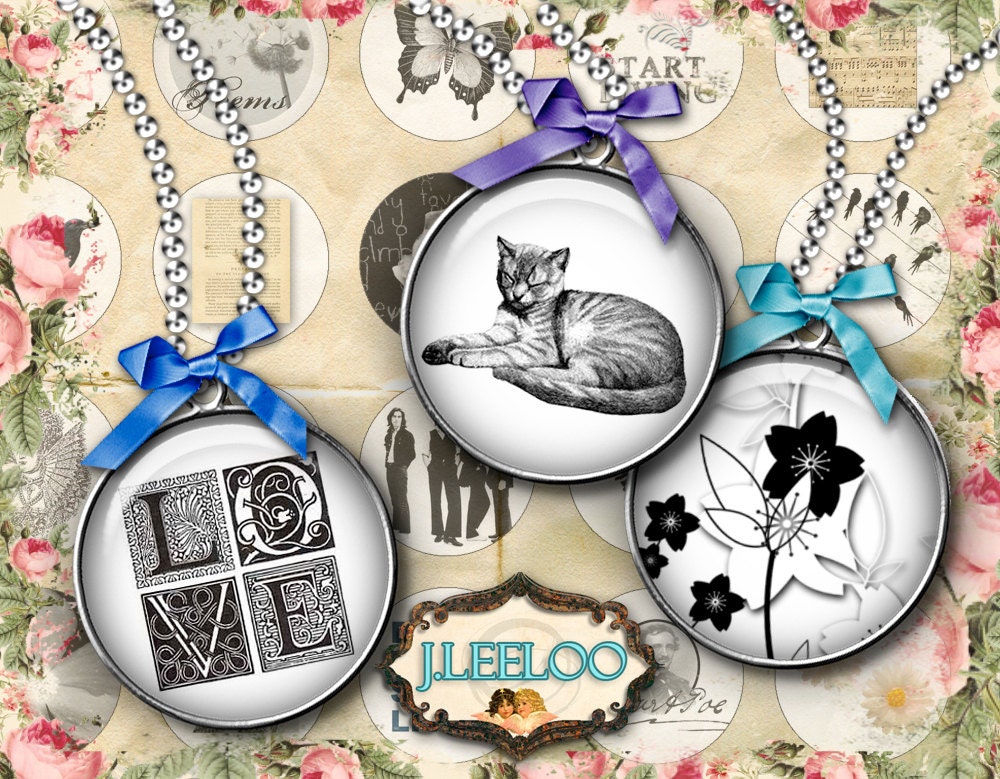 Digital collage sheets - Circle images download to print for jewelry, resin pendants, glass cabochon, charms, magnets, stickers, scrap book, hang tags, a great supply for your craft project.