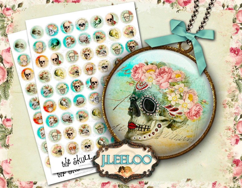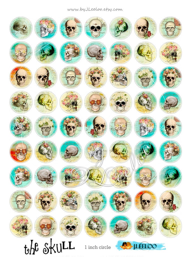 THE SKULL - Instant Download - Digital paper printable - Digital collage sheet circle digital images for pendants, jewelry and your craft and artwork.