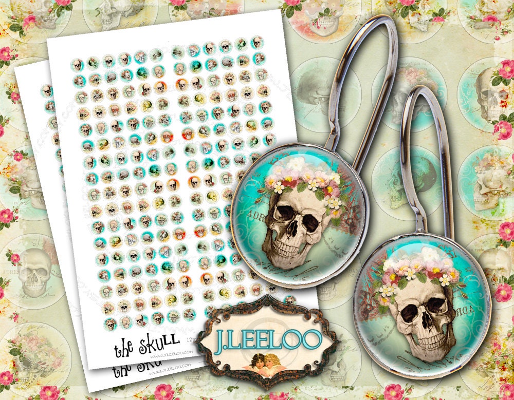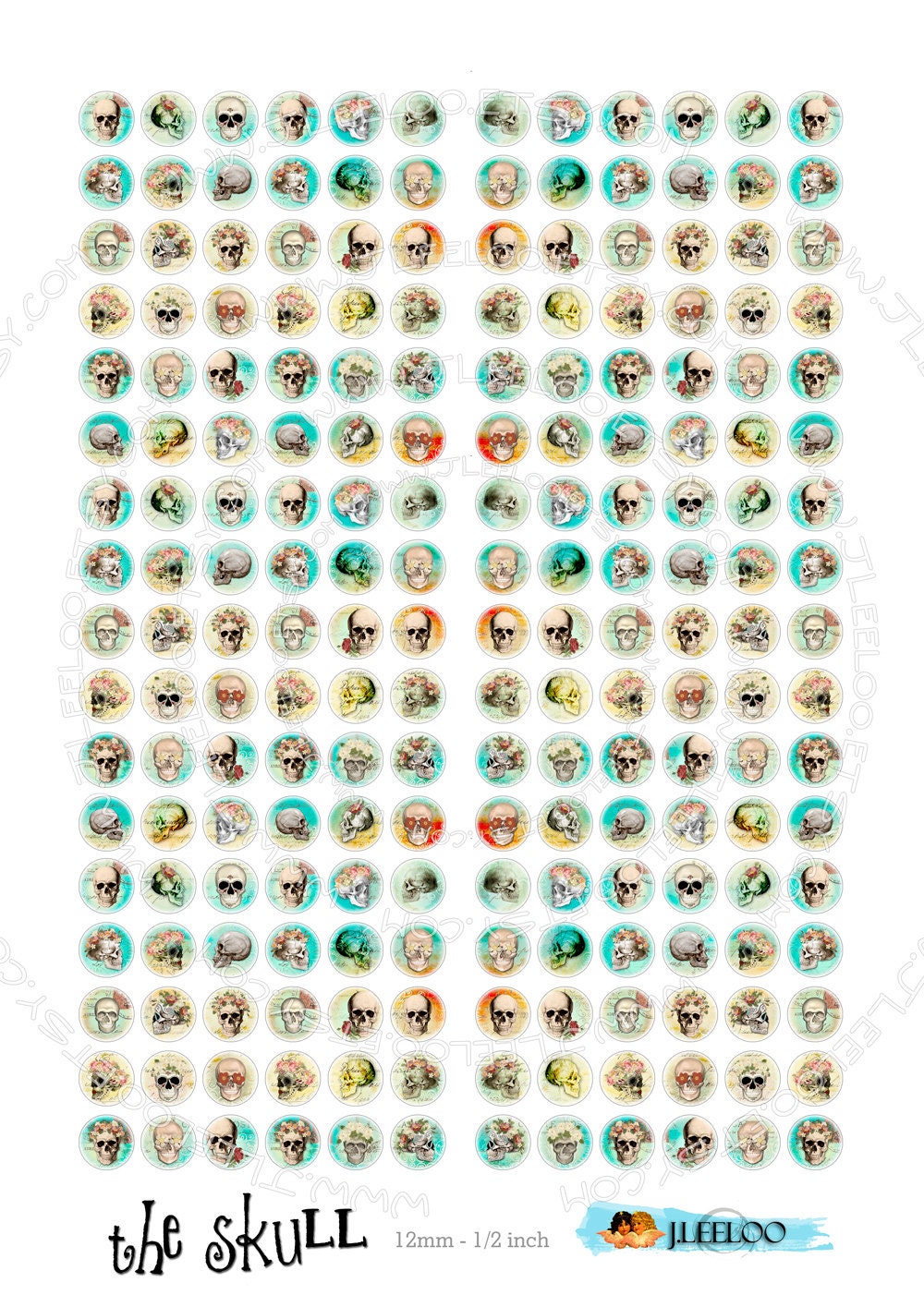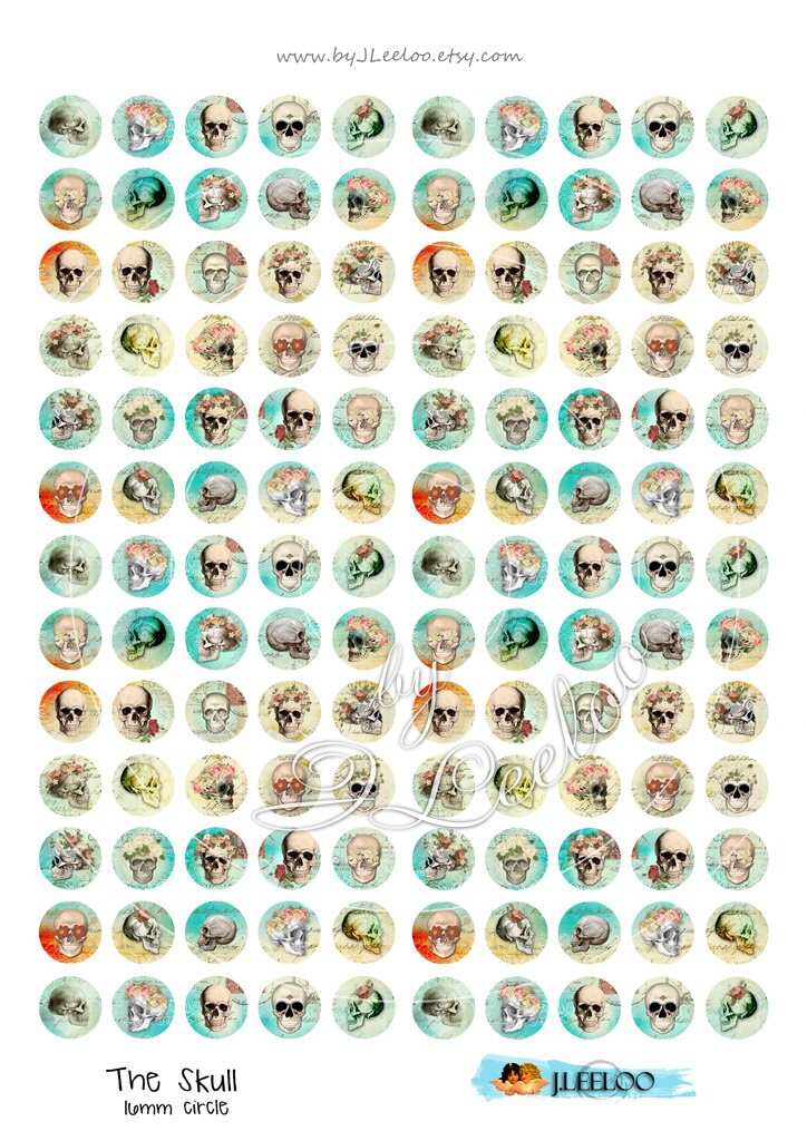 THE SKULL - Digital collage sheets - Circles images instant download ready to print for your jewelry making, resin pendants, rings, earrings and button, for magnets, stickers, scrapbook and your others craft project.