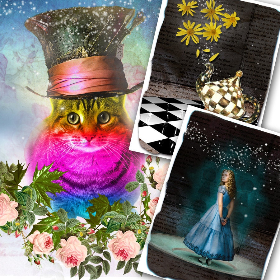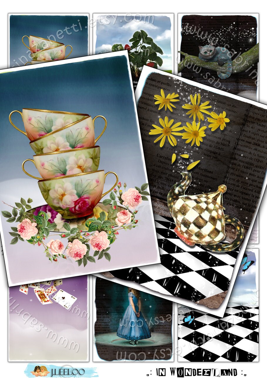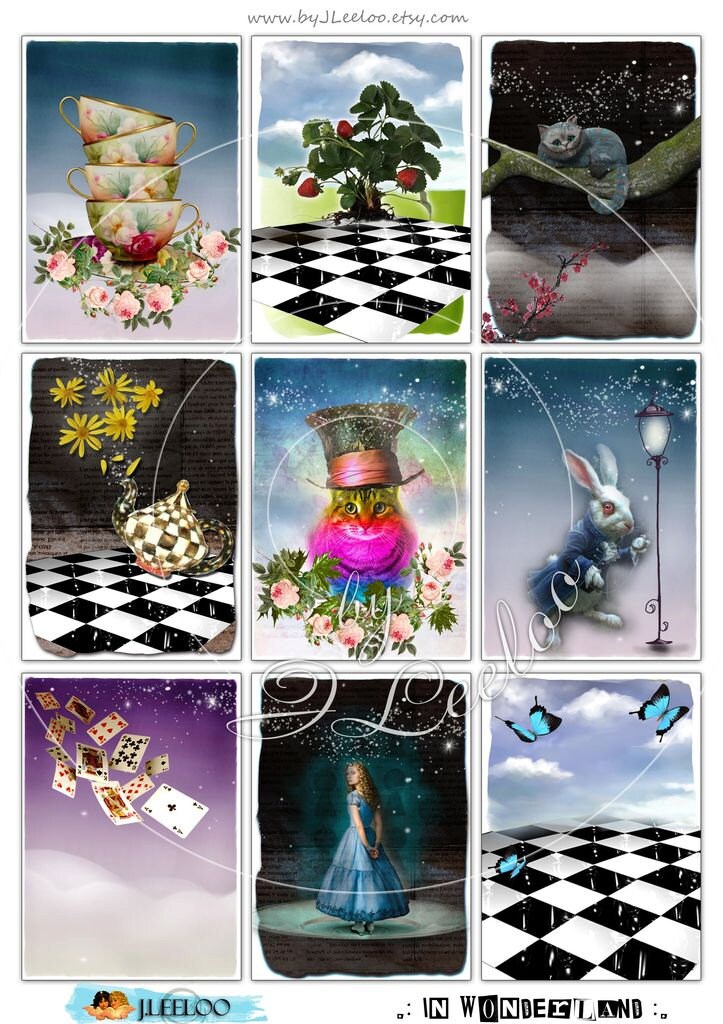 IN THE WONDERLAND Digital collage sheet - Printable Alice instant download paper for your artwork - scrapbook, diary art, hang tags, jewelry holders, invitations or annuncements, greetings cards or backing cards.... for your creativity!