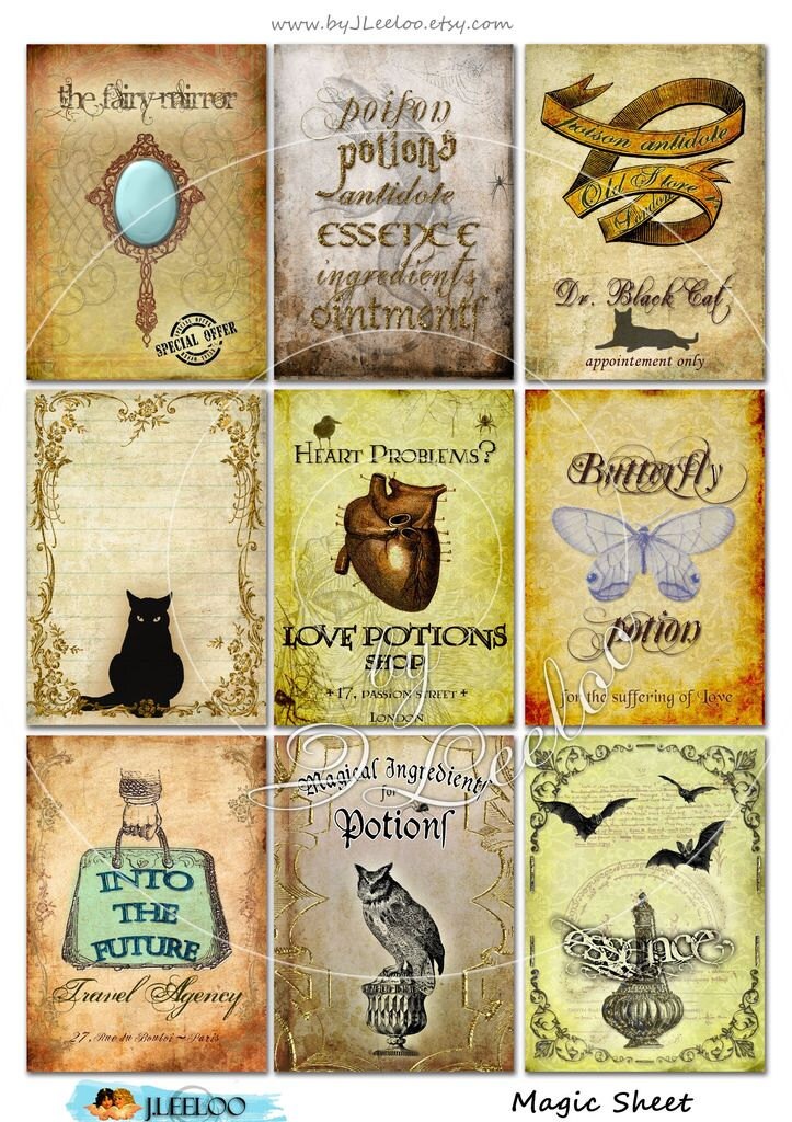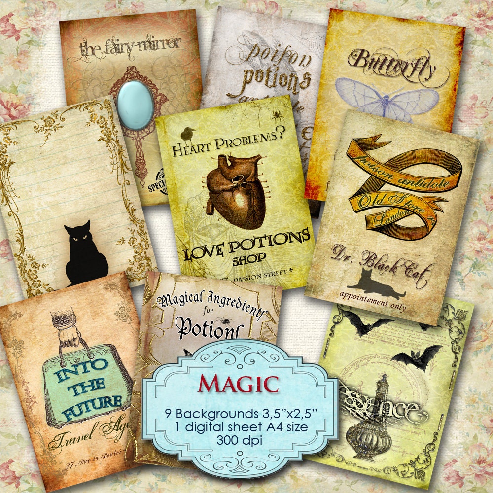 MAGIC Digital collage sheet - Printable instant download paper for your artwork - scrapbook, diary art, hang tags, jewelry holders, invitations or annuncements, greetings cards or backing cards.... for your creativity!