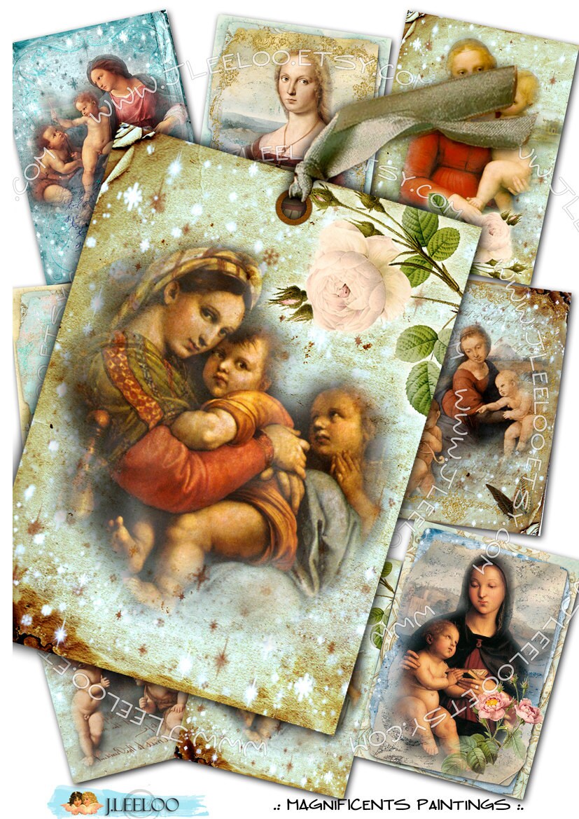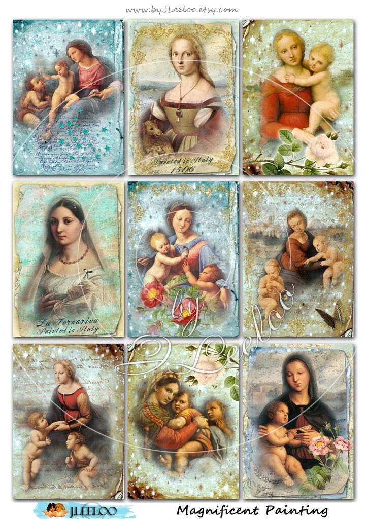 MAGNIFICENTS PAINTING - Printable digital collage sheet - Renaissance painting for your artwork: aceo or atc cards, scrapbook, diary art, hang tags, jewelry holders, invitations or annuncements, greetings cards or backing cards.... for your creativity!