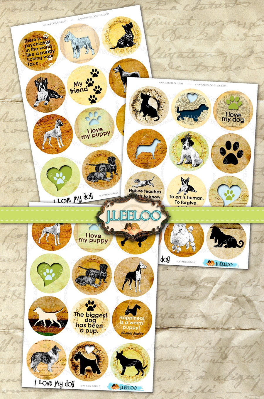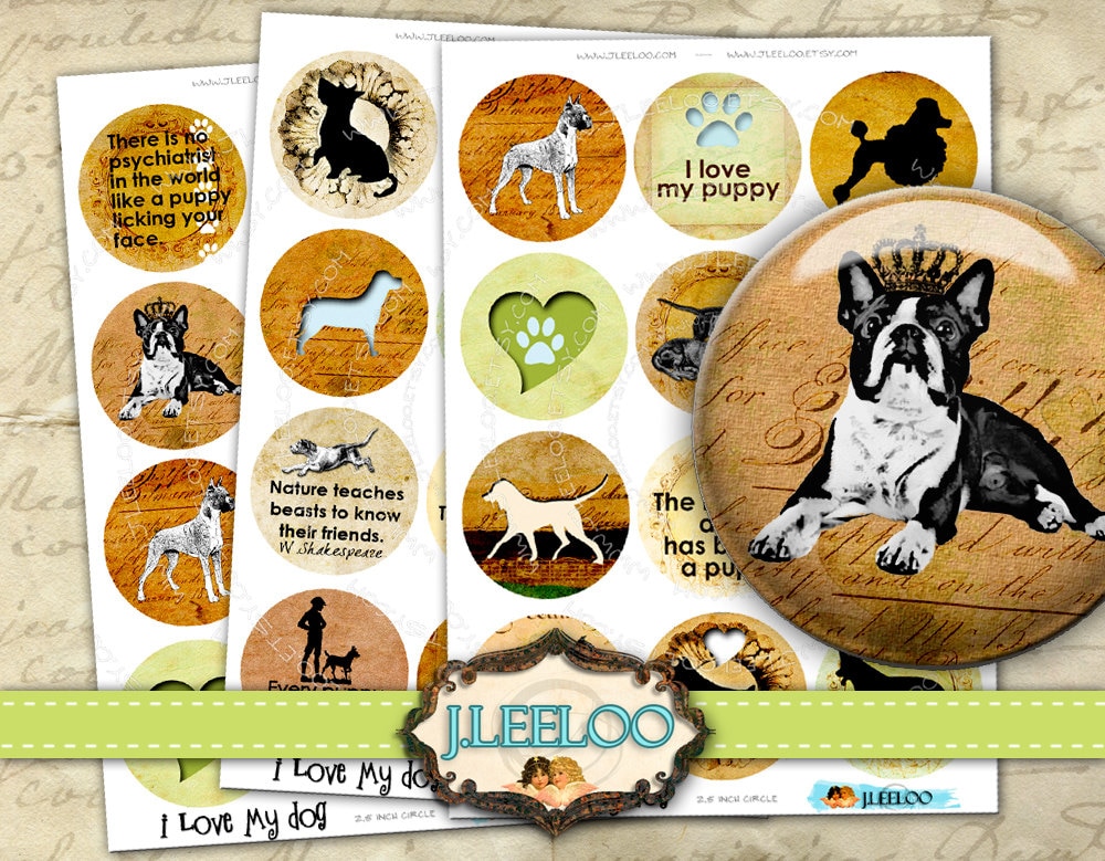 I LOVE MY DOG Instant Download - Digital collage sheets - Round printable images for resin pendants, charms, card making, button, magnets, stickers and all your craft project.