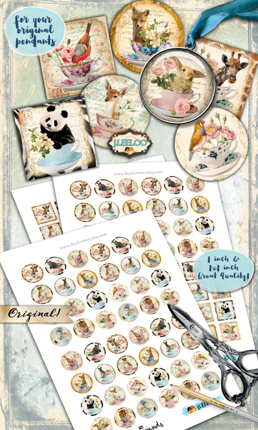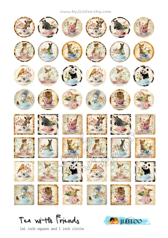 Digital collage sheets - Circles and squares images instant download ready to print for thank you cards or hang tags, your jewelry making, resin pendants, rings, earrings and button, for magnets, stickers, scrapbook and your others craft project.