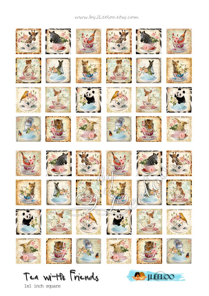 1 digital paper with square images 1x1 inch size