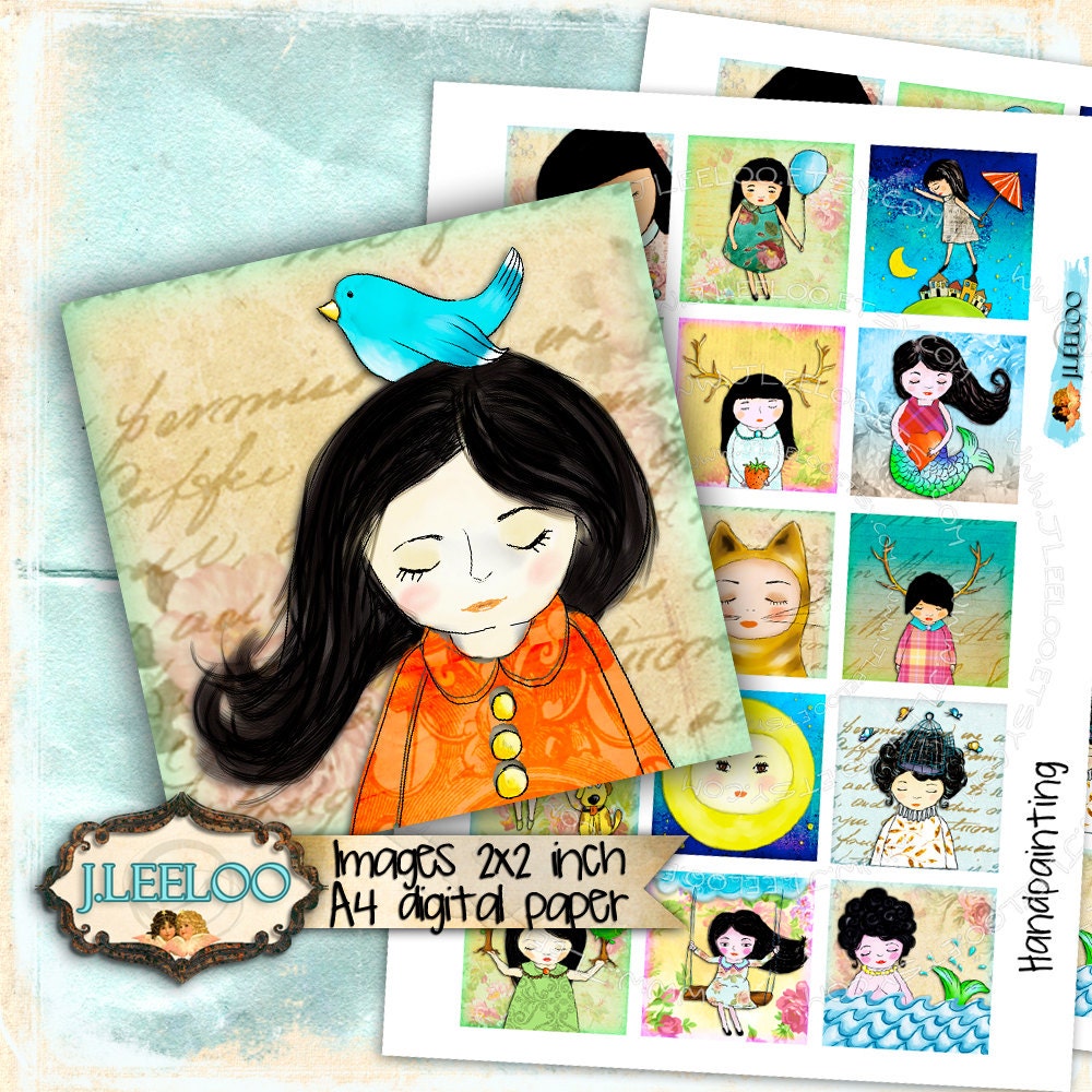 Digital collage sheets - Square images download to print for jewelry, resin pendants, glass cabochon, charms, magnets, stickers, scrap book, hang tags, a great supply for your craft project.