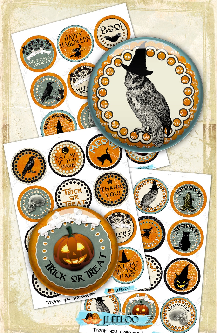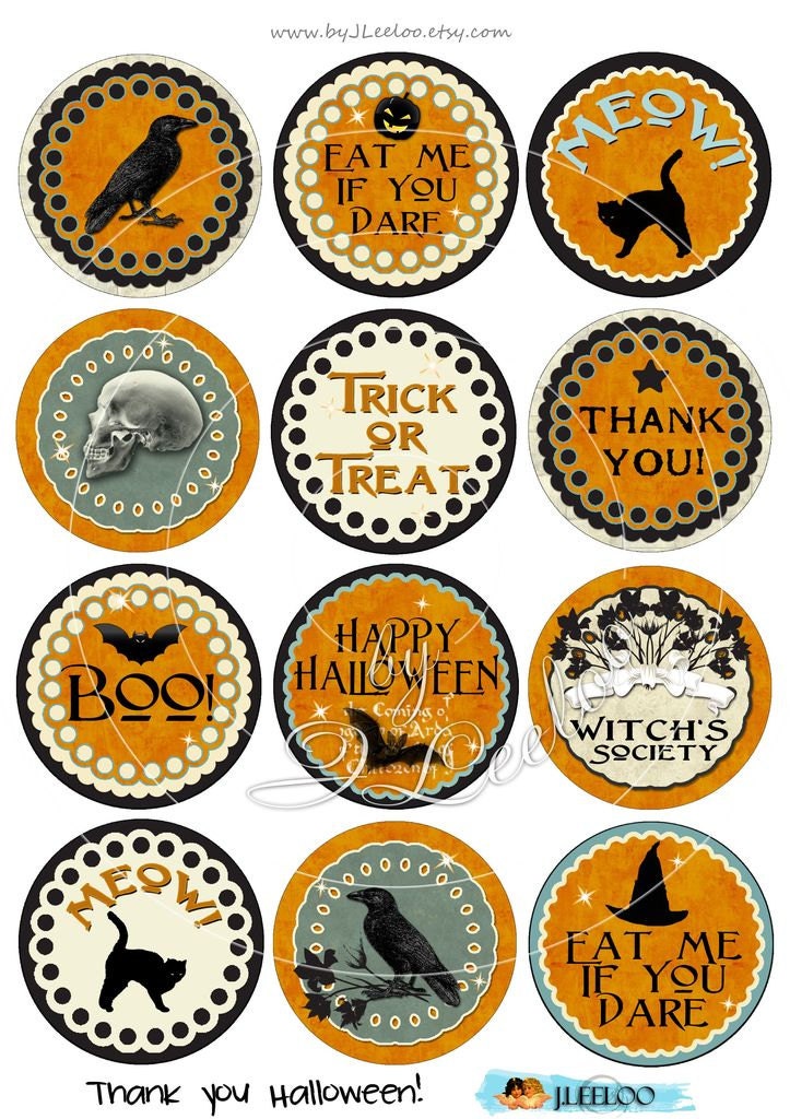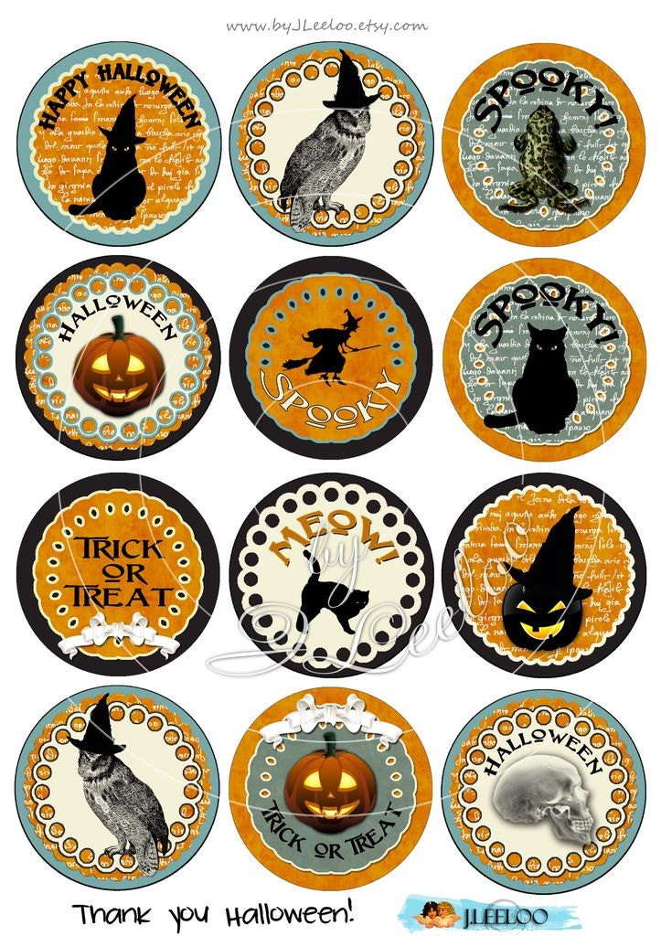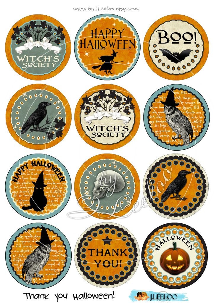 THANK YOU HALLOWEEN Instant Download - Digital collage sheets - Round printable images for resin pendants, charms, card making, button, magnets, stickers and all your craft project.