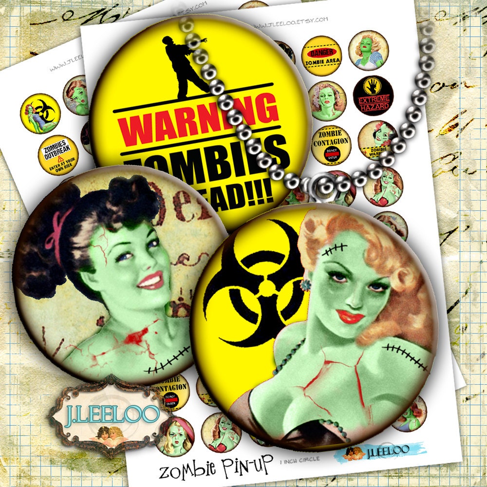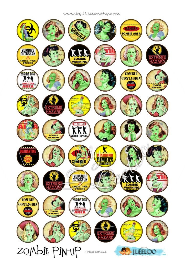 ZOMBIE PIN UP Instant Download - Digital collage sheets - Round printable images for walking dead resin pendants, charms, card making, button, magnets, stickers and all your craft project.