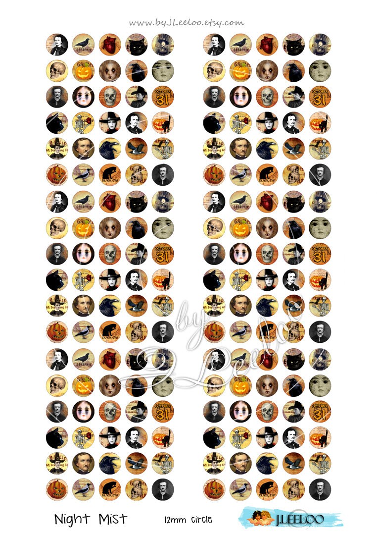 NIGHT MIST - Digital collage sheets - Circles images instant download ready to print for your jewelry making, resin pendants, rings, earrings and button, for magnets, stickers, scrapbook and your others craft project.
