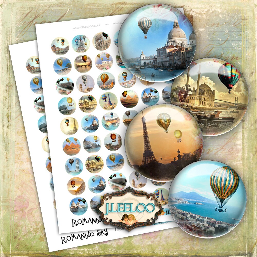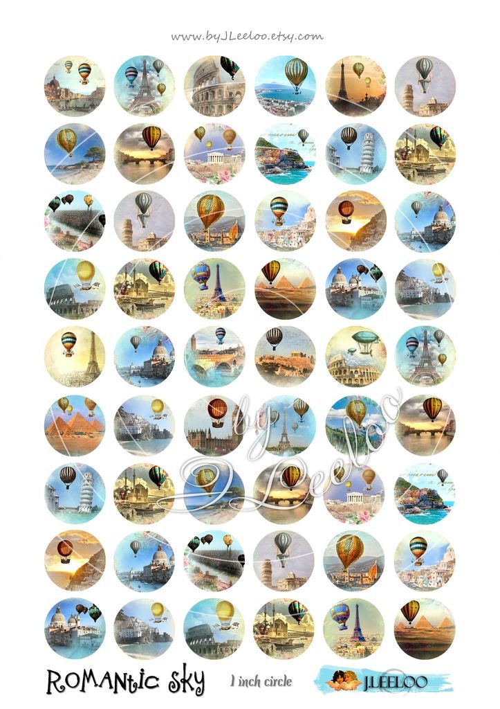 ROMANTIC SKY - Instant download printable - digital collage sheets - circle images for your crafting project - glass cabochons, jewelry, resin pendants, hang tags, rings, earrings and all your need for your art.