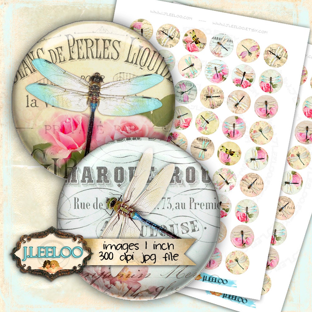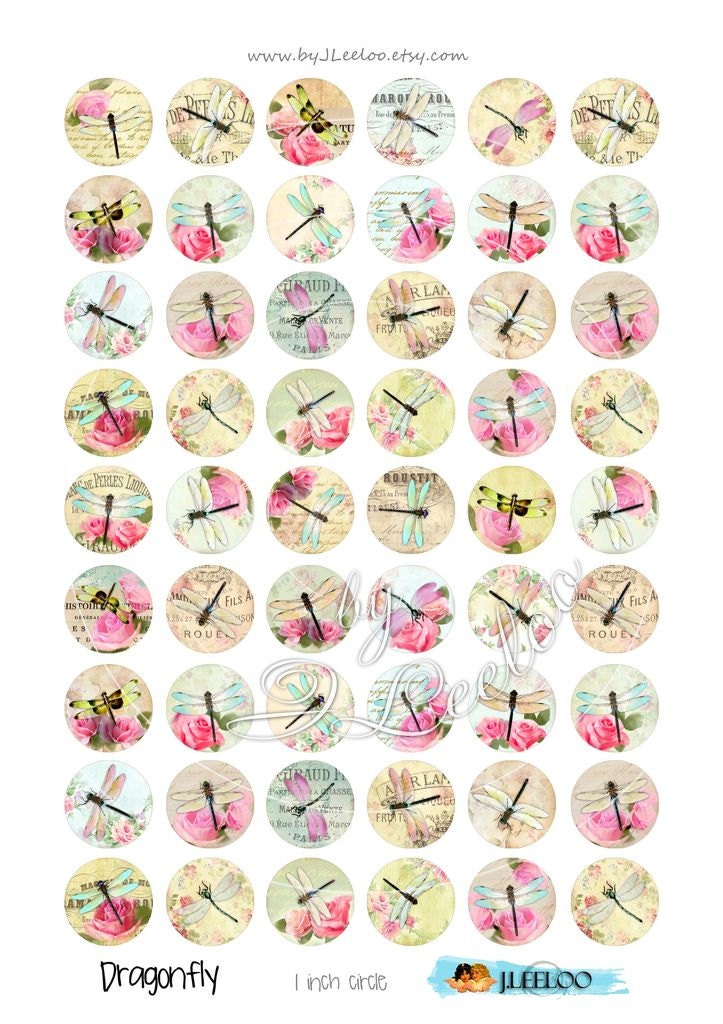 DRAGONFLY - Instant download printable - digital collage sheets - circle images for your crafting project - glass cabochons, jewelry, resin pendants, hang tags, rings, earrings and all your need for your art.