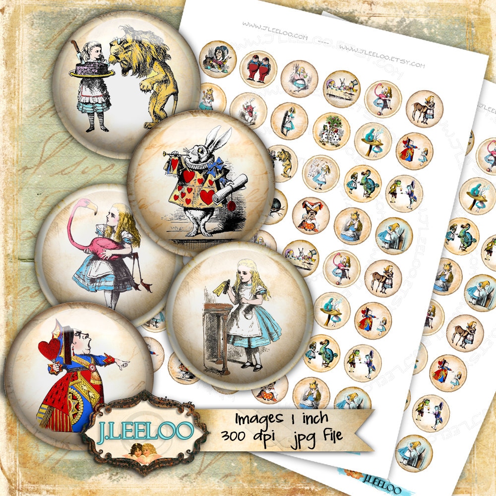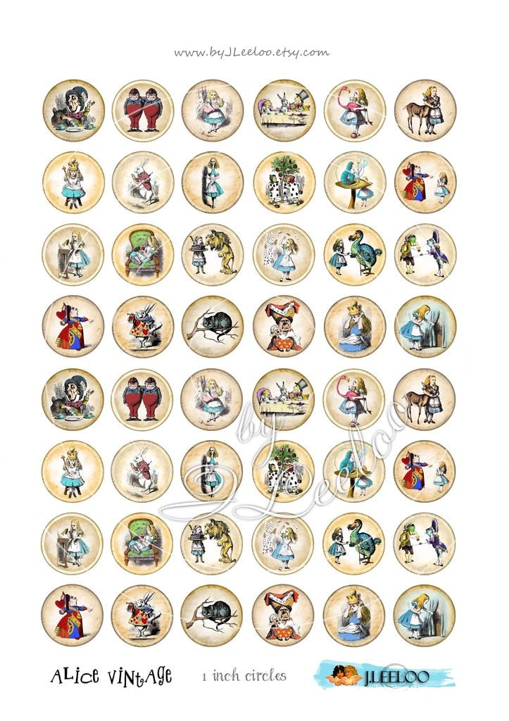 VINTAGE ALICE - Instant download printable - digital collage sheets - circle images for your crafting project - glass cabochons, jewelry, resin pendants, hang tags, rings, earrings and all your need for your art.