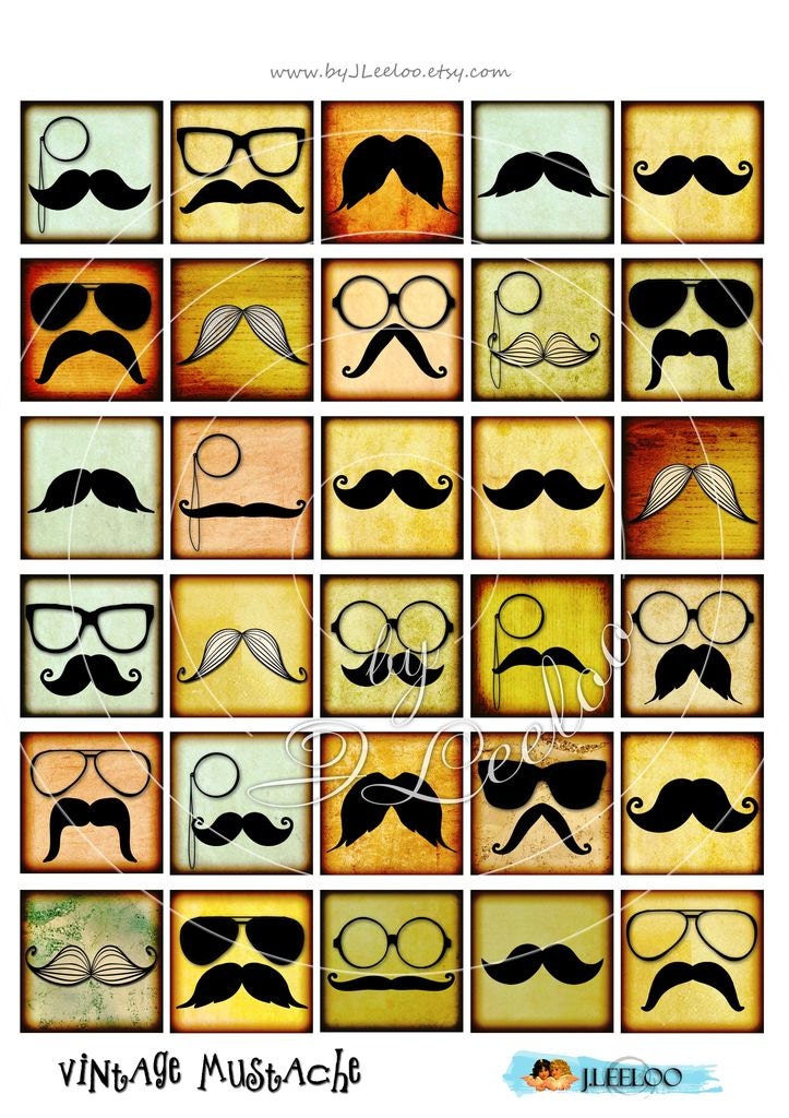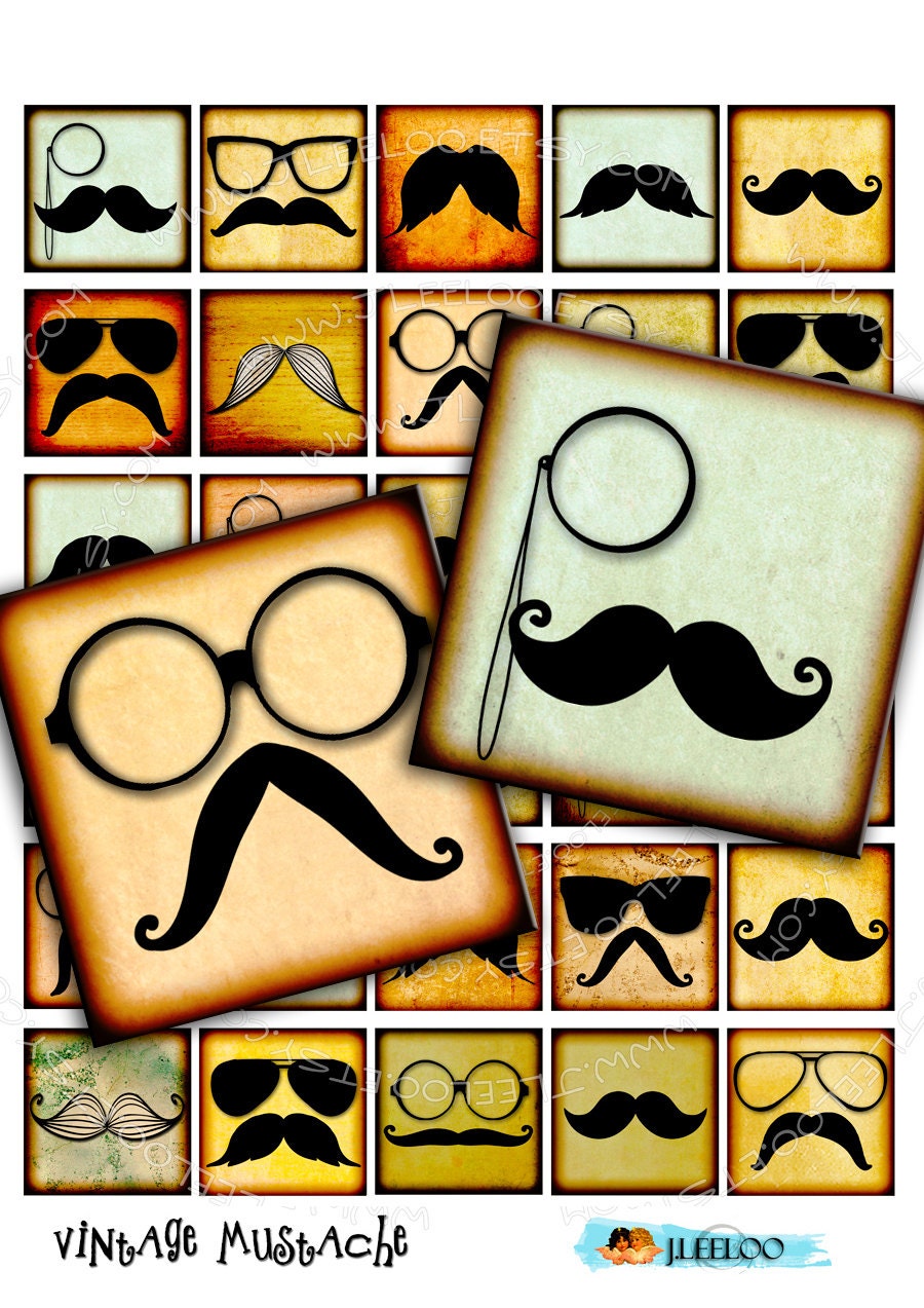 VINTAGE MUSTACHE Instant Download - Digital collage sheets - Square printable images for resin pendants, charms, card making, button, magnets, stickers and all your craft project.