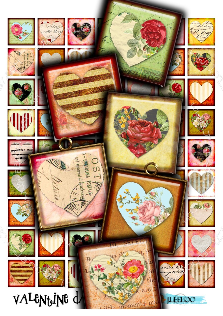 VALENTINE DAY Instant Download - Digital collage sheets - Circle printable images for jewelry, glass cabochons, bottle caps, stickers, hang tags and all your artwork.