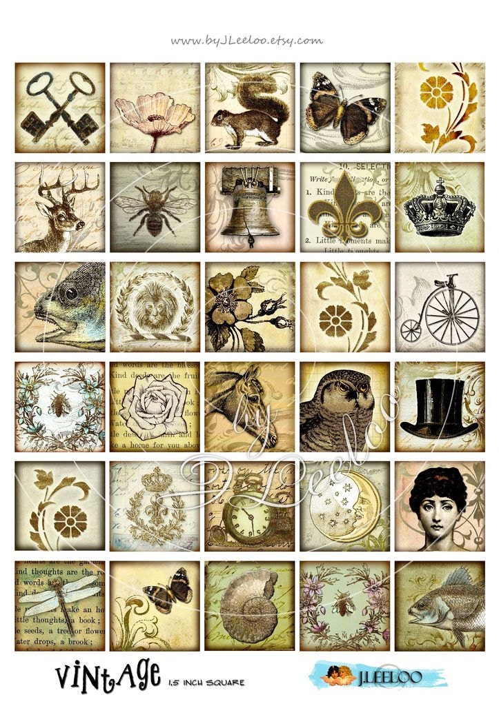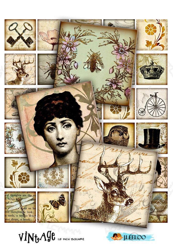 VINTAGE - Instant download printable - digital collage sheets - images for your crafting project - hang tags, jewelry holders, stickers, scrapbook and all your need for your art.