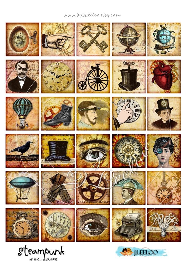 STEAMPUNK - Instant download printable - digital collage sheets - images for your crafting project - hang tags, jewelry holders, stickers, scrapbook and all your need for your art.
