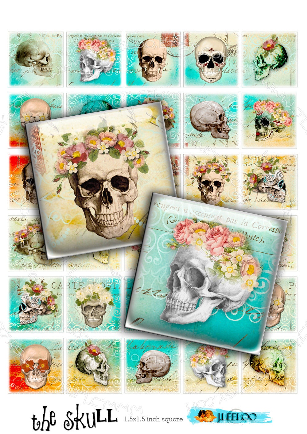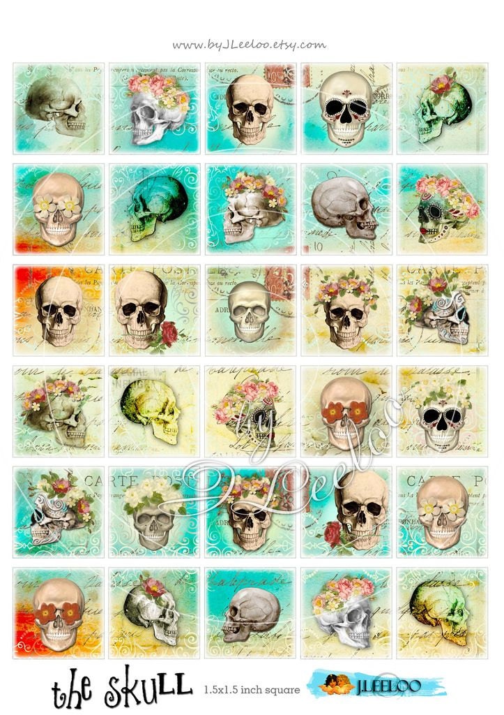 THE SKULL - Instant Download - Digital paper printable - Digital collage sheet square digital images 30x40mm for pendants, jewelry and your craft and artwork.
