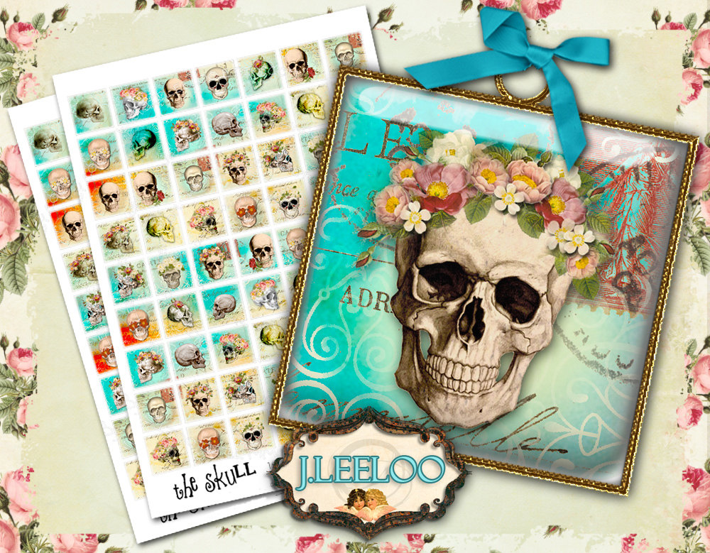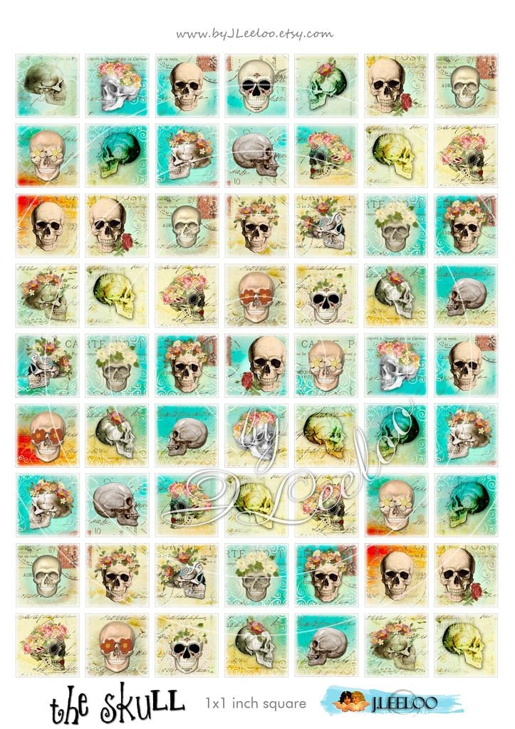 THE SKULL - Instant Download - Digital paper printable - Digital collage sheet square digital images 30x40mm for pendants, jewelry and your craft and artwork.