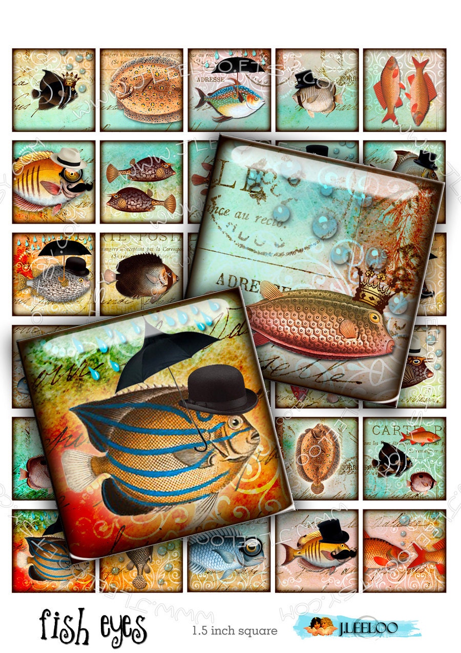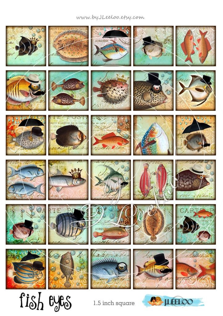 FISH EYES - Instant download printable - digital collage sheets - images for your crafting project - hang tags, jewelry holders, stickers, scrapbook and all your need for your art.