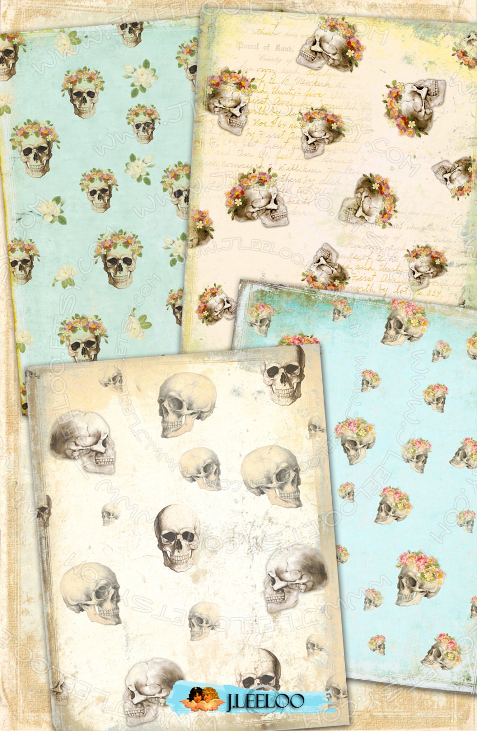 PAPER SKULL Instant Download - Large Digital collage sheet pack - Victorian days of the dead digital papers for your crafting projects: scrapbook, background, diary, iron-on transfer, card making.... print it as many time as you want.
