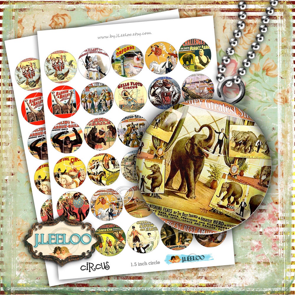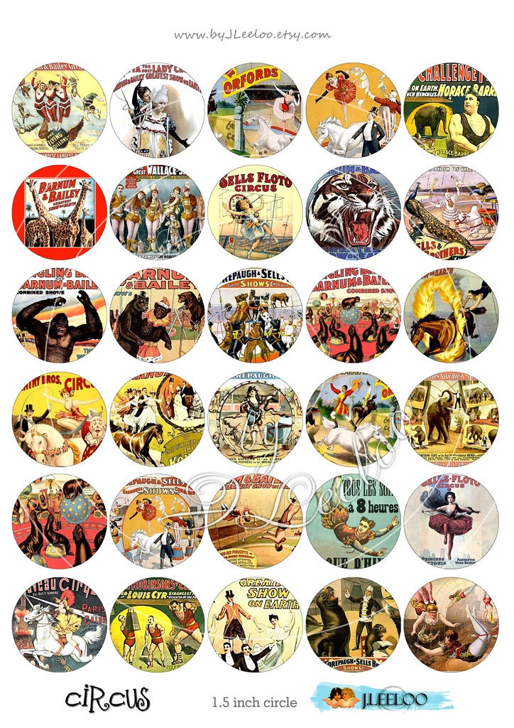 CIRCUS Instant Download - Digital collage sheets - Round printable images for bottlecups, hang tags, resin pendants, pins, charms, card making, button, magnets, stickers and all your craft project.