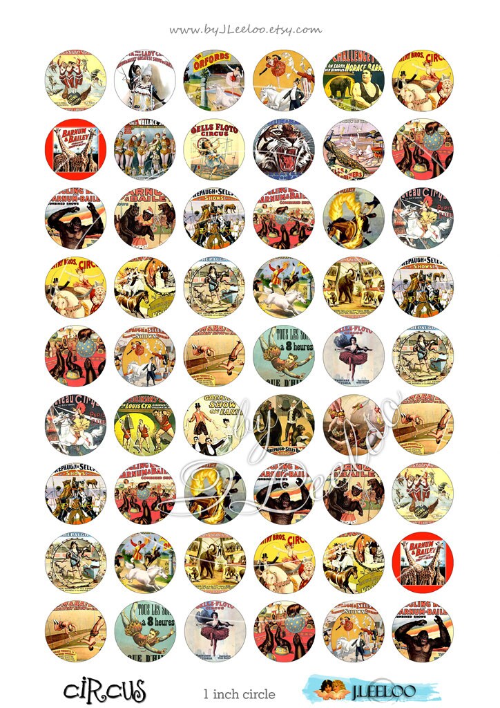 CIRCUS Instant Download - Digital collage sheets - Round printable images for bottlecups, hang tags, resin pendants, pins, charms, card making, button, magnets, stickers and all your craft project.