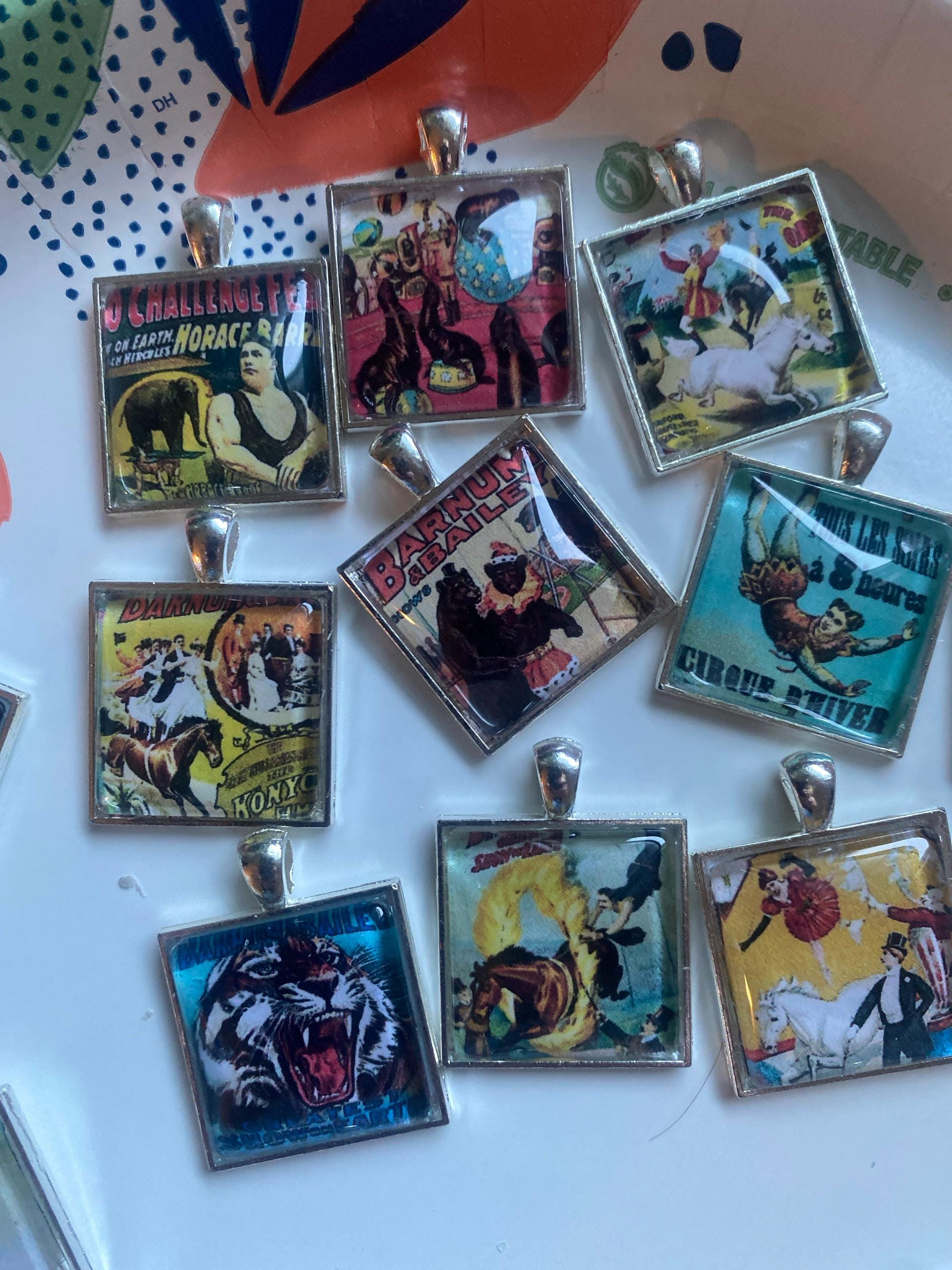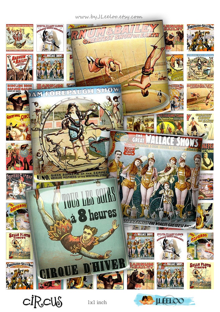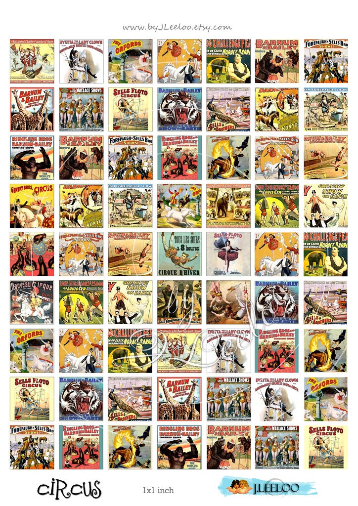 CIRCUS Instant Download - Digital collage sheets - Square printable images for bottlecups, hang tags, resin pendants, pins, charms, card making, button, magnets, stickers and all your craft project.