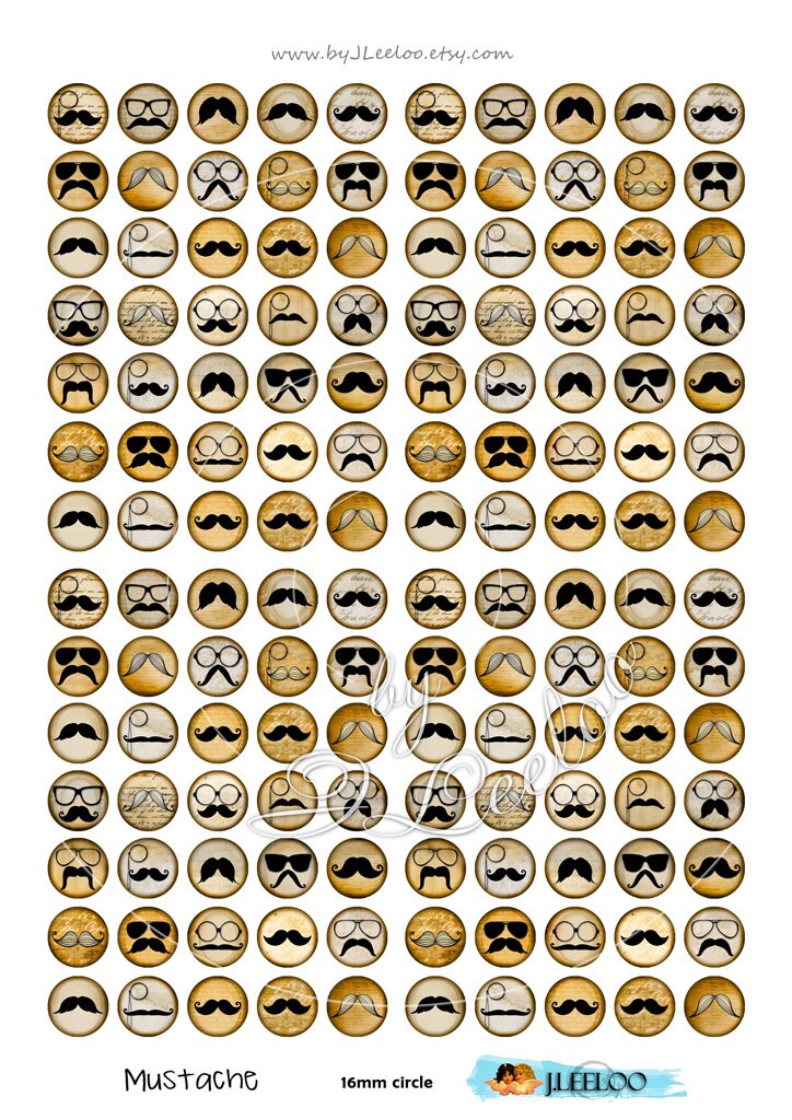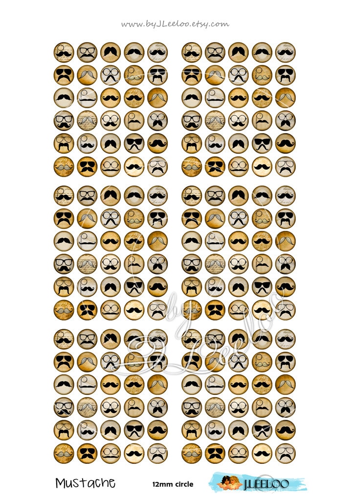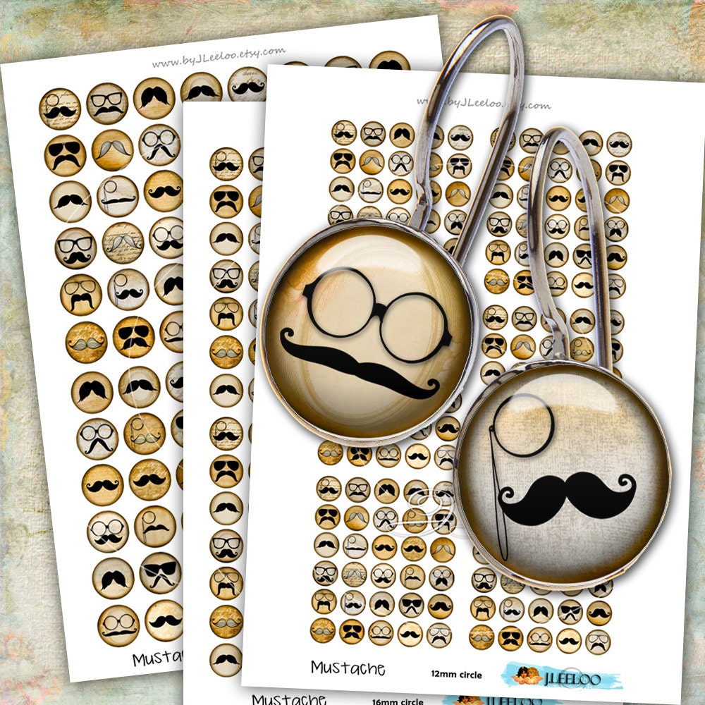 MUSTACHE - Digital collage sheets - Circles images instant download ready to print for your jewelry making, resin pendants, rings, earrings and button, for magnets, stickers, scrapbook and your others craft project.