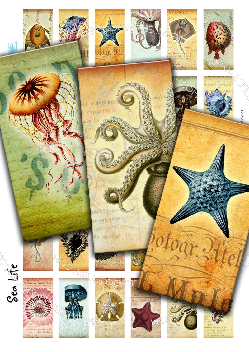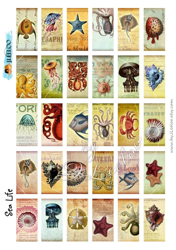 SEA LIFE Instant Download - Digital collage sheets - Domino printable images for jewelry, glass cabochons, bottle caps, stickers, hang tags and all your artwork.