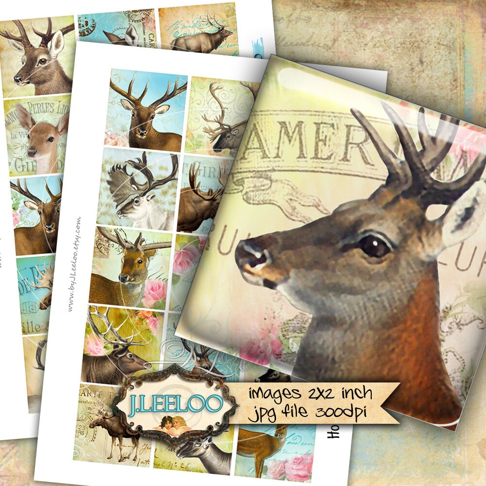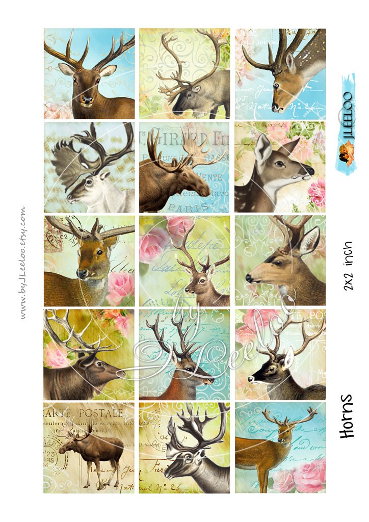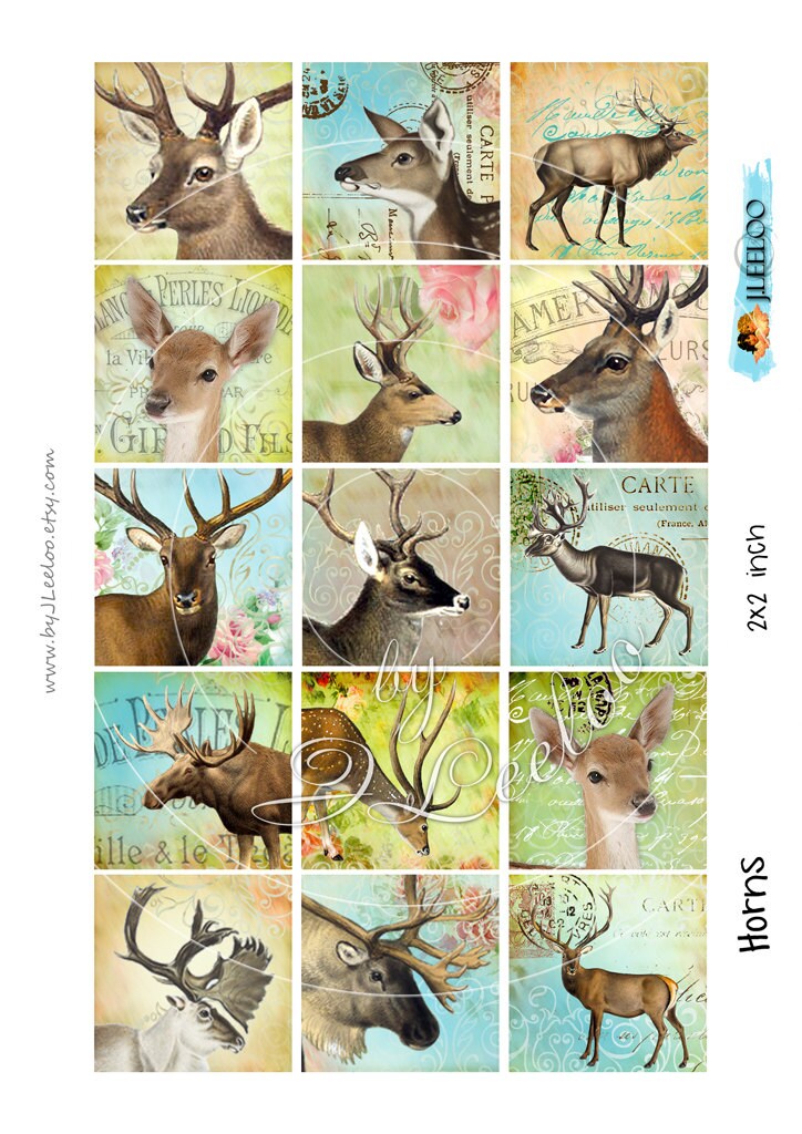 HORNS - Instant download printable - digital collage sheets - square images for your crafting project - glass cabochons, jewelry, resin pendants, hang tags, rings, earrings and all your need for your art.