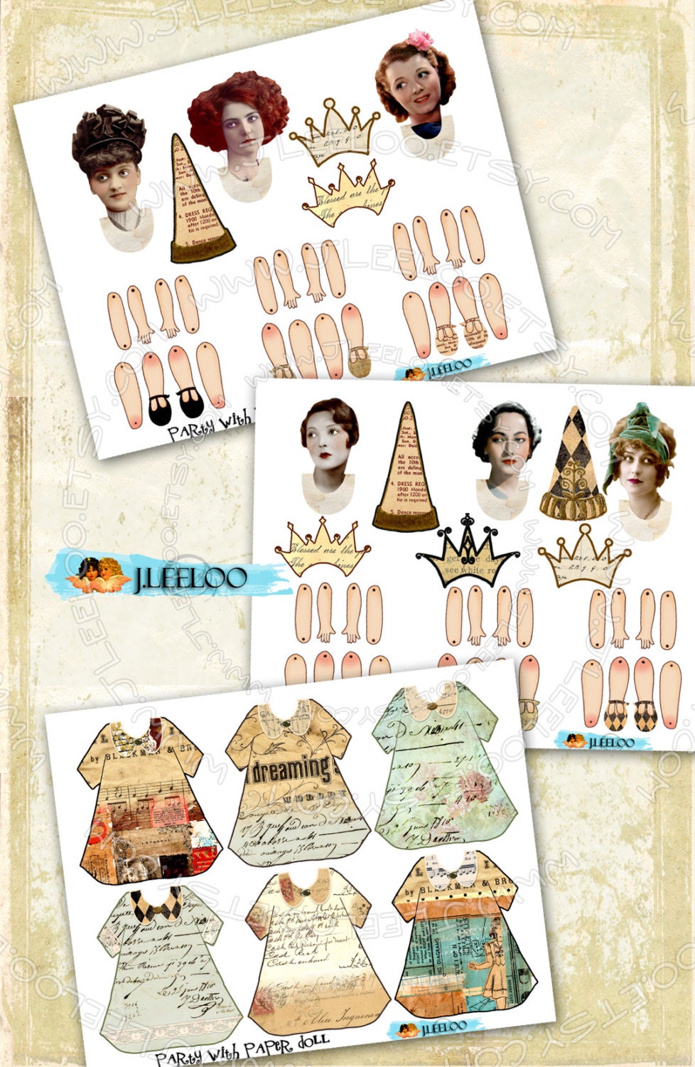 PARTY WITH PAPER DOLL Digital collage sheet doll - Digital papers: printable Antoinette paper doll for your artwork and crafting project - Altered art, steampunk, scrapbook, vintage project etc... free your imagination!