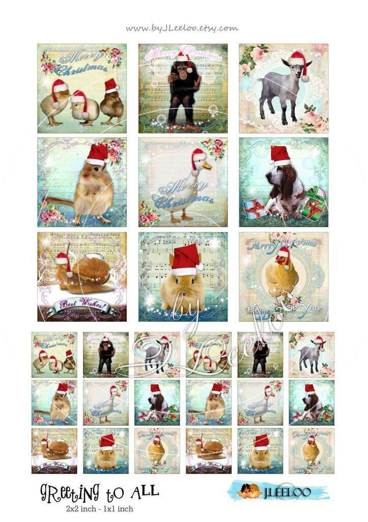 GREETING TO ALL - Digital Download - Printable digital collage sheet for your artwork: jewelry. mirror, magnets, hang tags, jewelry holders, invitations or annuncements, greetings cards or backing cards.... for your creativity!