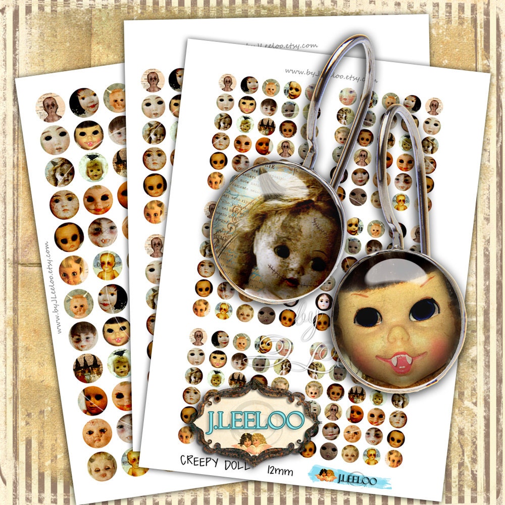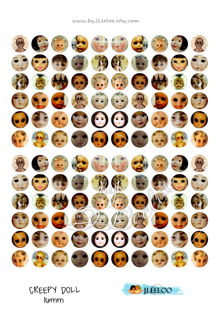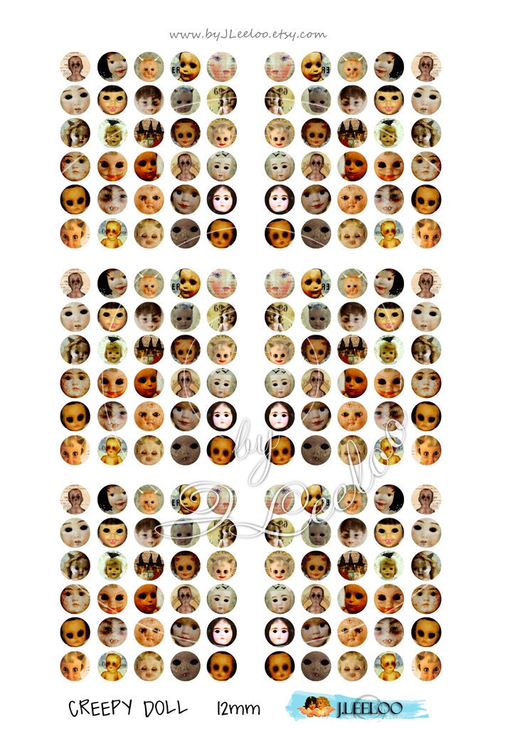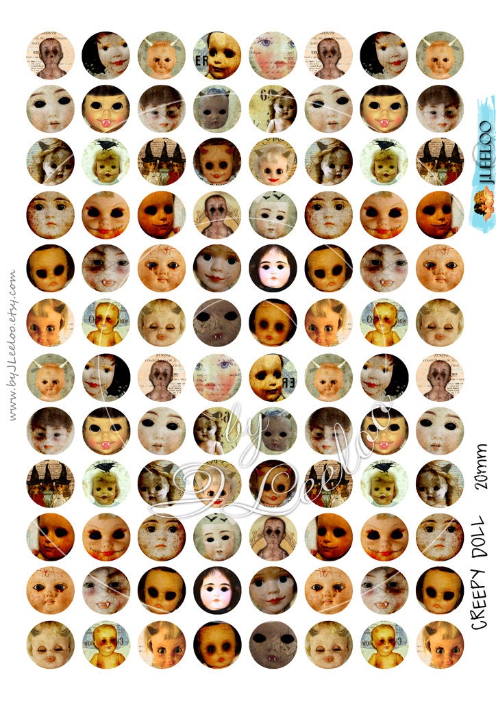 CREEPY DOLL - Digital collage sheets - Circles images instant download ready to print for your jewelry making, resin pendants, rings, earrings and button, for magnets, stickers, scrapbook and your others craft project.