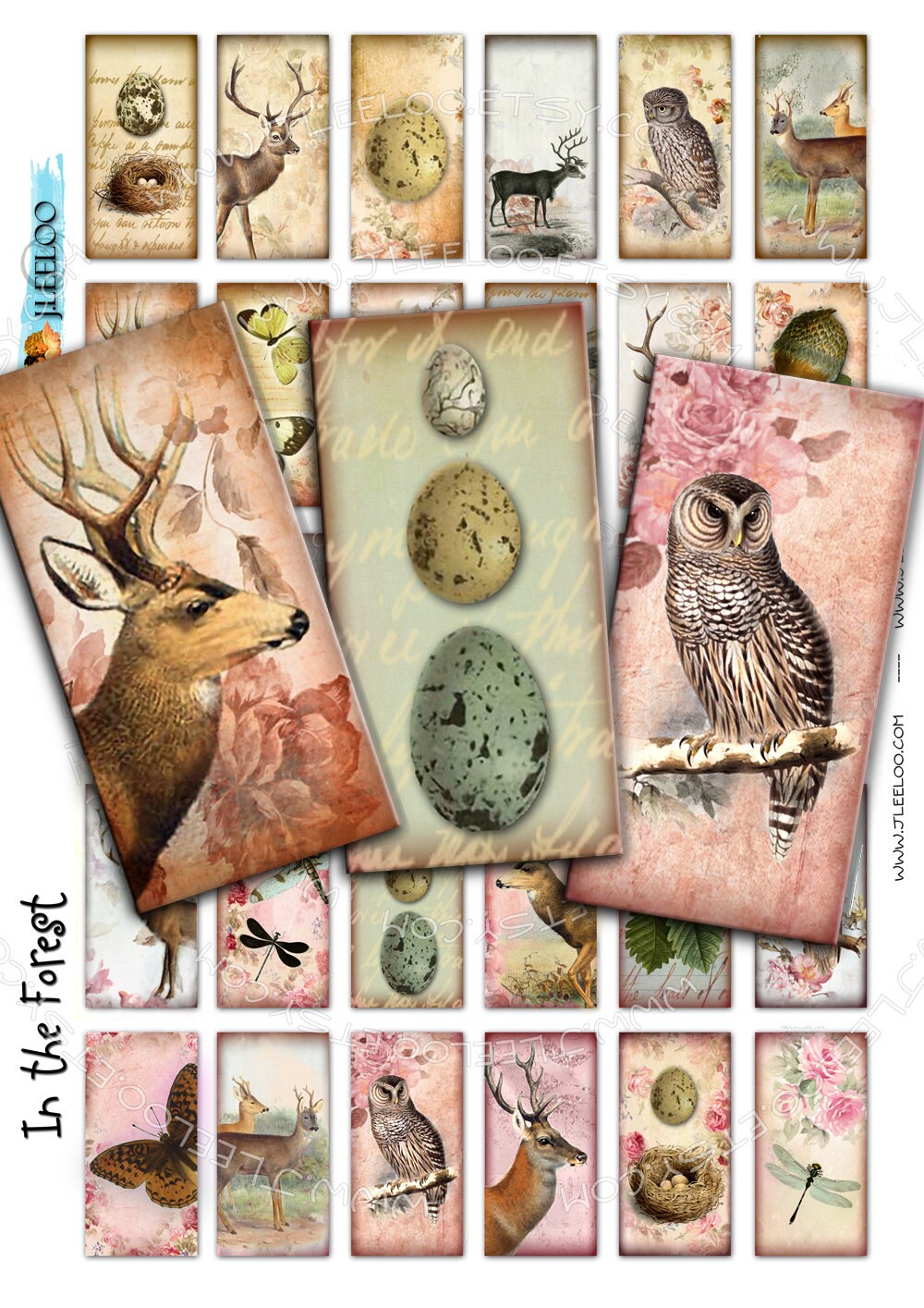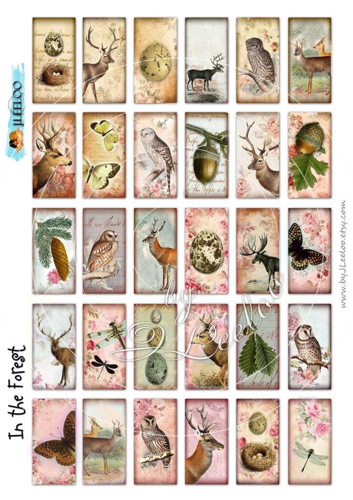 IN THE FOREST Instant Download - Digital collage sheets - Domino printable images for jewelry, glass cabochons, soldered art, stickers, hang tags and all your artwork.