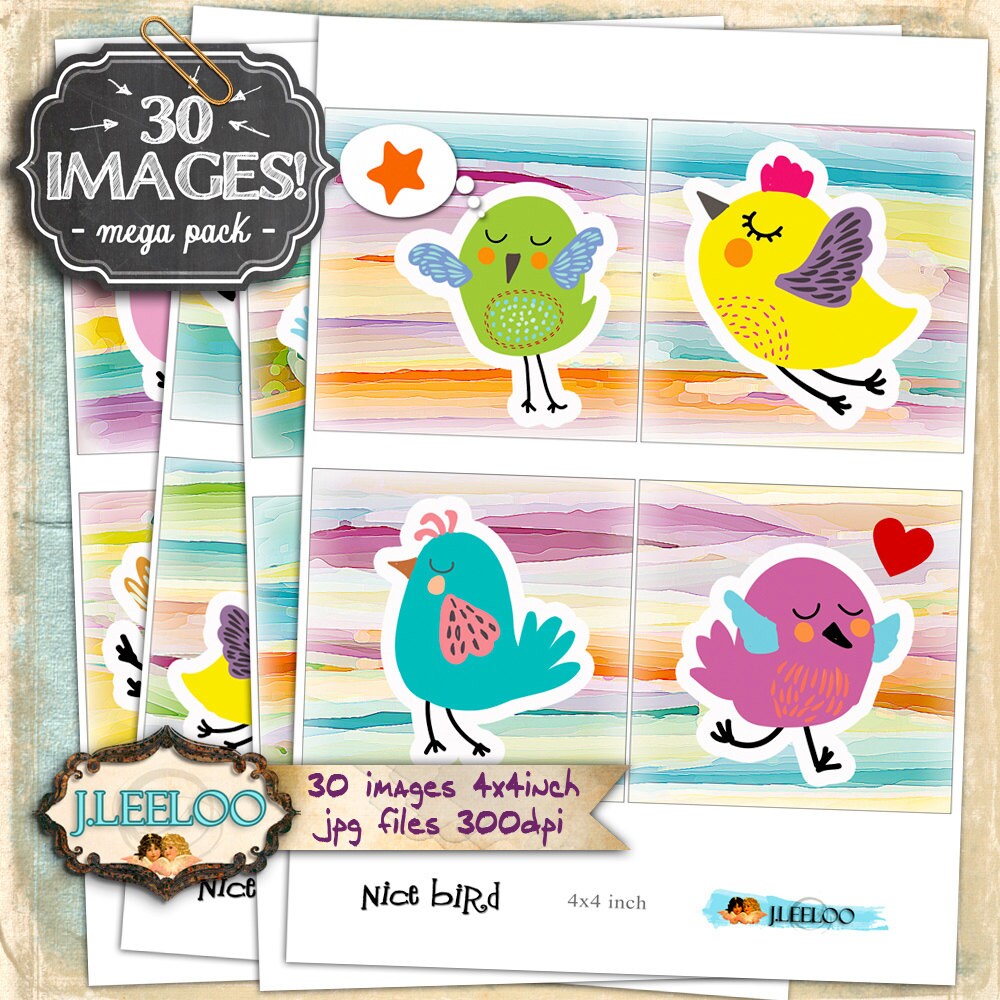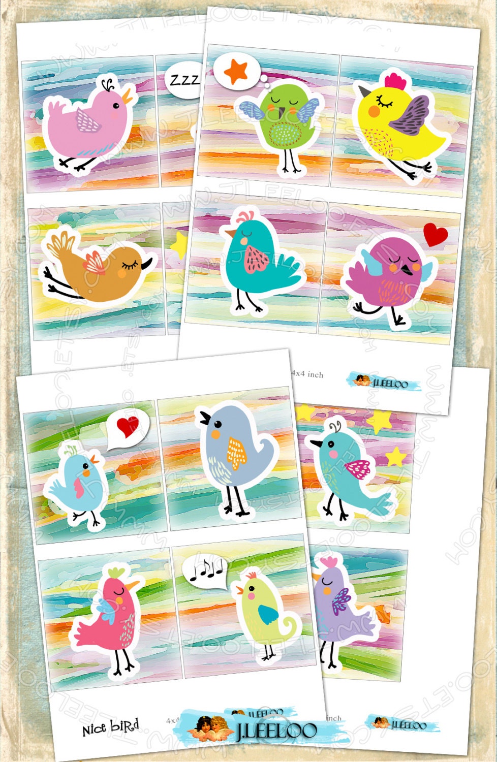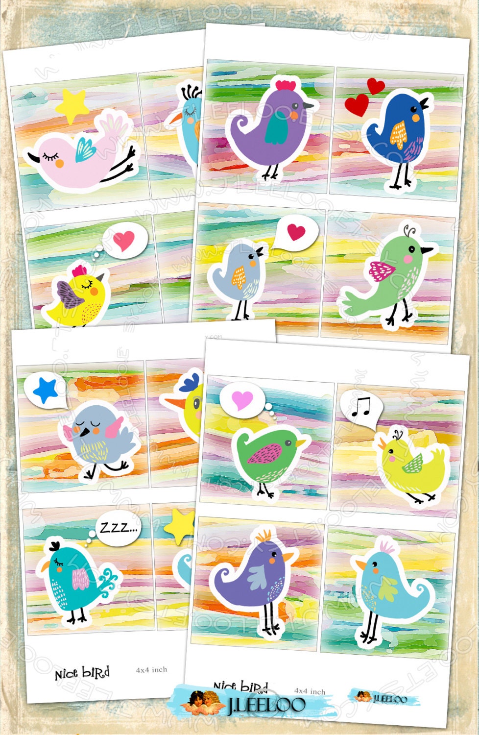 NICE BIRDS Instant download printable - digital collage sheets - square images for coaster, jewelry holder, hang tags, glass cabochons, bottle caps, stickers and all your artwork. and all your need for your art.